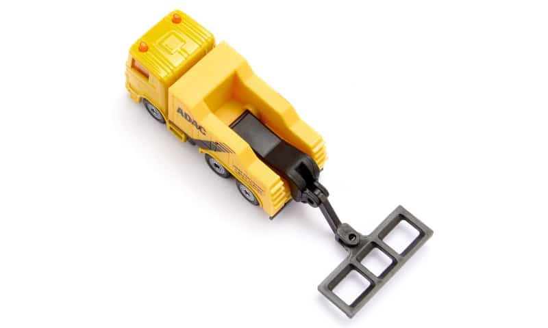 Deze stoere drieassige bergingsauto heeft een volledig beweegbare bergingsinrichting aan de achterkant.