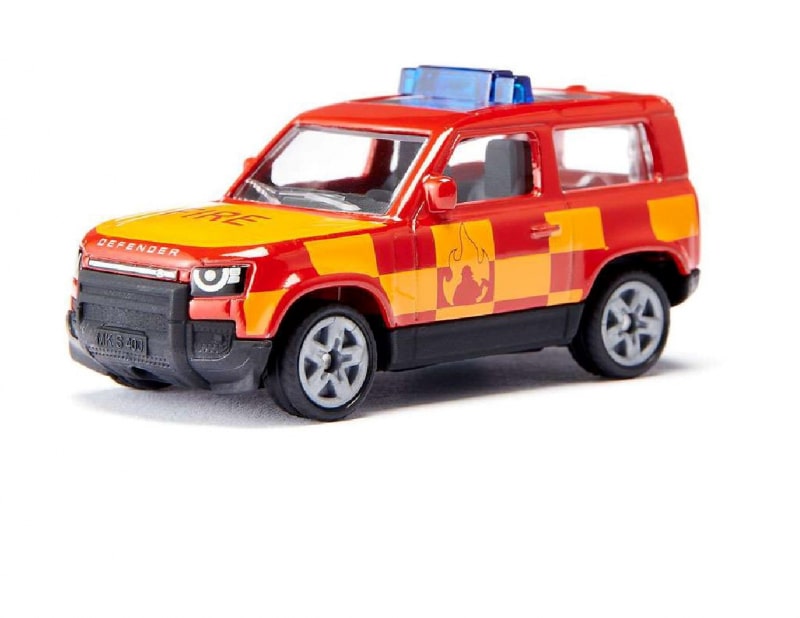 Robuust, krachtig, niet te stoppen! De Land Rover Defender behoort tot de meest legendarische terreinwagens uit de autowereld – en dat al ruim 70 jaar. Geen wonder dat ook de brandweer op de Defender vertrouwt en de wagen gebruikt voor inzetten in onbegaanbaar terrein. Met zijn metalen carrosserie en de sportieve velgen met rubberen loopvlak trotseert ook de model Defender weer en wind bij het spelen. Het grote glazen zonnedak biedt vrij zicht op het interieur dat ook op kleine schaal origineelgetrouw is uitgevoerd van robuust kunststof. De opvallende vuurrode lakkering met gele kleuraccenten en de blauwe lichtbalk op het dak maken meteen duidelijk: deze Defender is op elk moment paraat voor kleine en grote off-road reddingsacties.