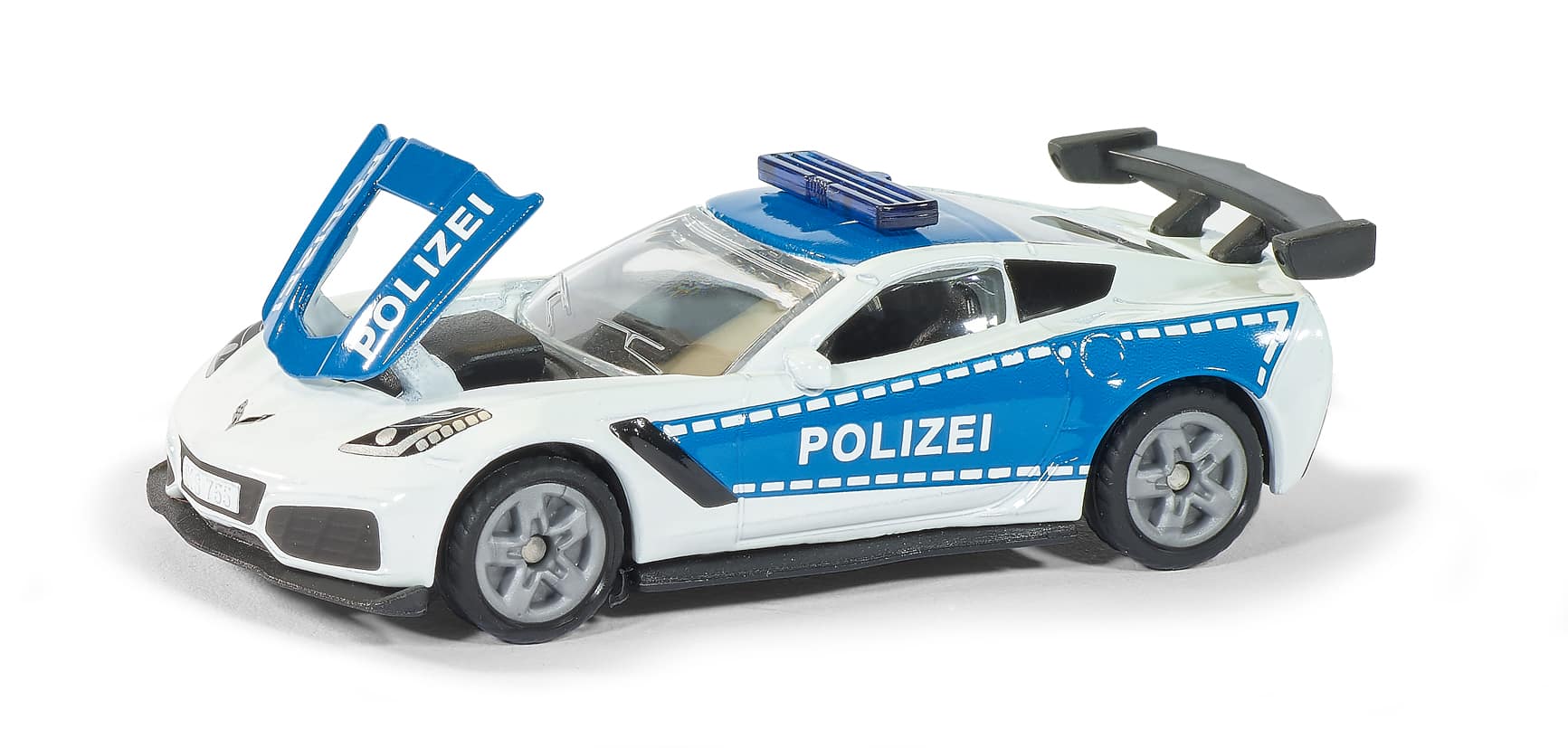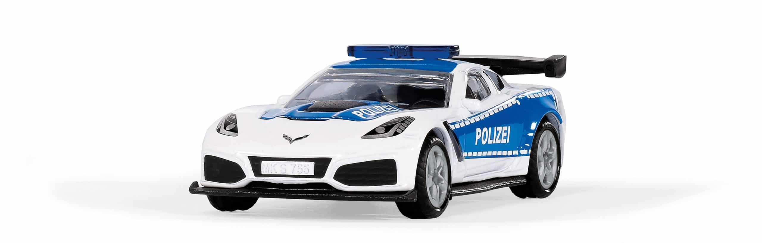 Weinig kans voor vluchtende boeven, deze straatracer krijgt ze allemaal te pakken: met de Chevrolet Corvette ZR1 wint de politie gegarandeerd elke achtervolging. De Amerikaanse muscle car met V8-motor brengt een enorm vermogen over op de straat en is ook buiten het circuit nauwelijks te verslaan. Het aerodynamische design, de metalen carrosserie, achterspoiler, sportvelgen met rubberbanden en het blauwe zwaailicht maken van het wit-blauwe hulpvoertuig een echt powermodel. De motorkap kan open voor een blik op de krachtbron van de Chevrolet Corvette ZR1 die als politiewagen de ster in het kinderkamer wagenpark is.