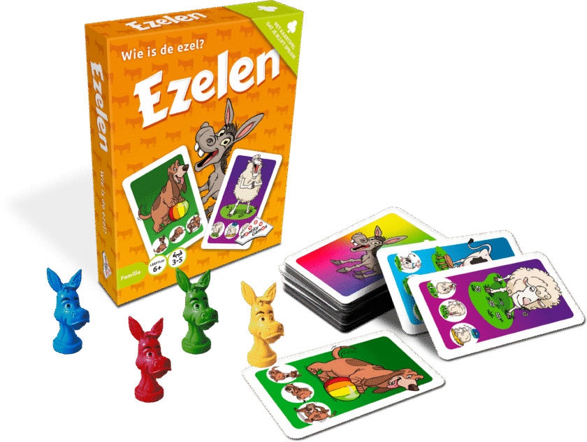 Ezelen, het ludieke kaartspel dat iedereen kent, nu in een uitvoering met leuke dierenkaarten en echte ezels. Ezelen is een gezellig, hectisch en snel spel voor je hele familie. Schuif de kaarten door naar elkaar, verzamel 4 dezelfde en pak als eerste een ezel. Te laat? Dan bén je de ezel!