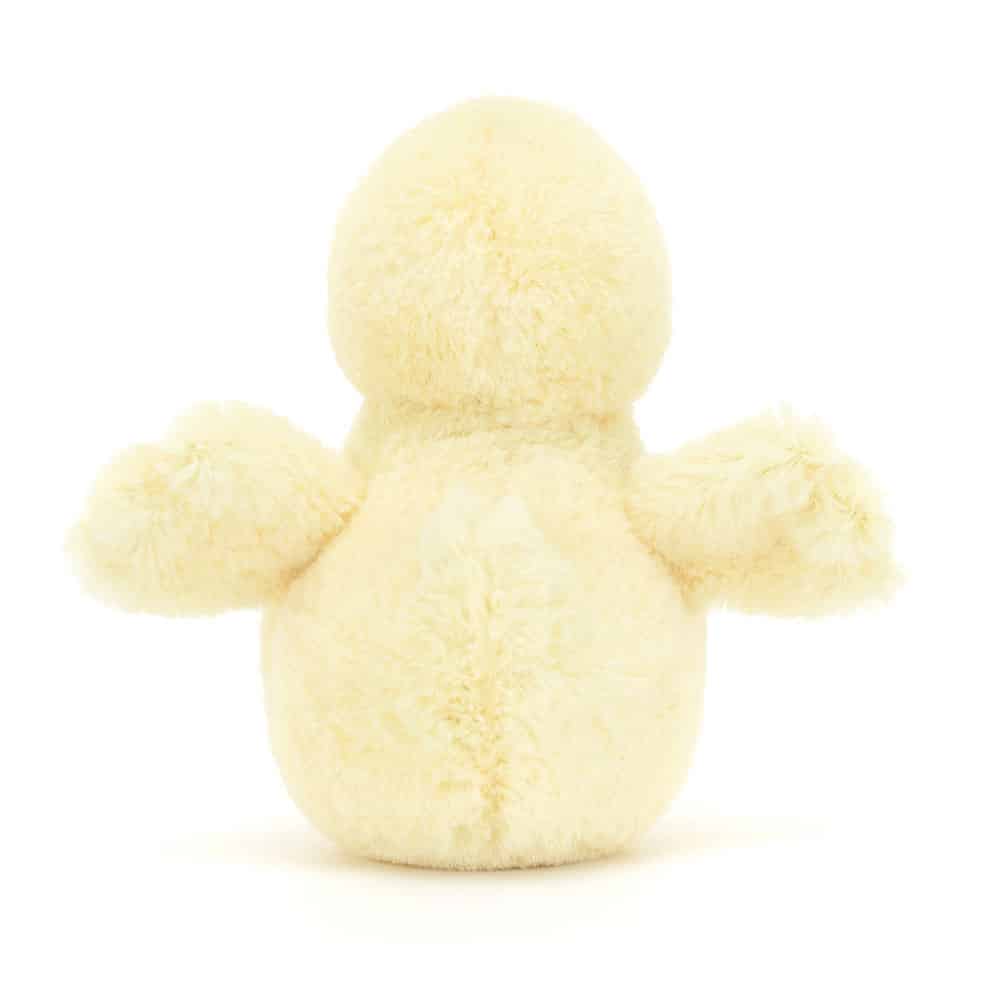 Fluffy Duck is een vrolijke zwemmer met een zachte pastelgele vacht. Dit pastelkleurige eendje is mollig en vrolijk met zijn suède snavel en opgeheven staartje, waarmee hij met die zachte vleugeltjes zwaait. Alleen wassen op 30 graden Celsius; niet in de droger, chemisch reinigen of strijken.