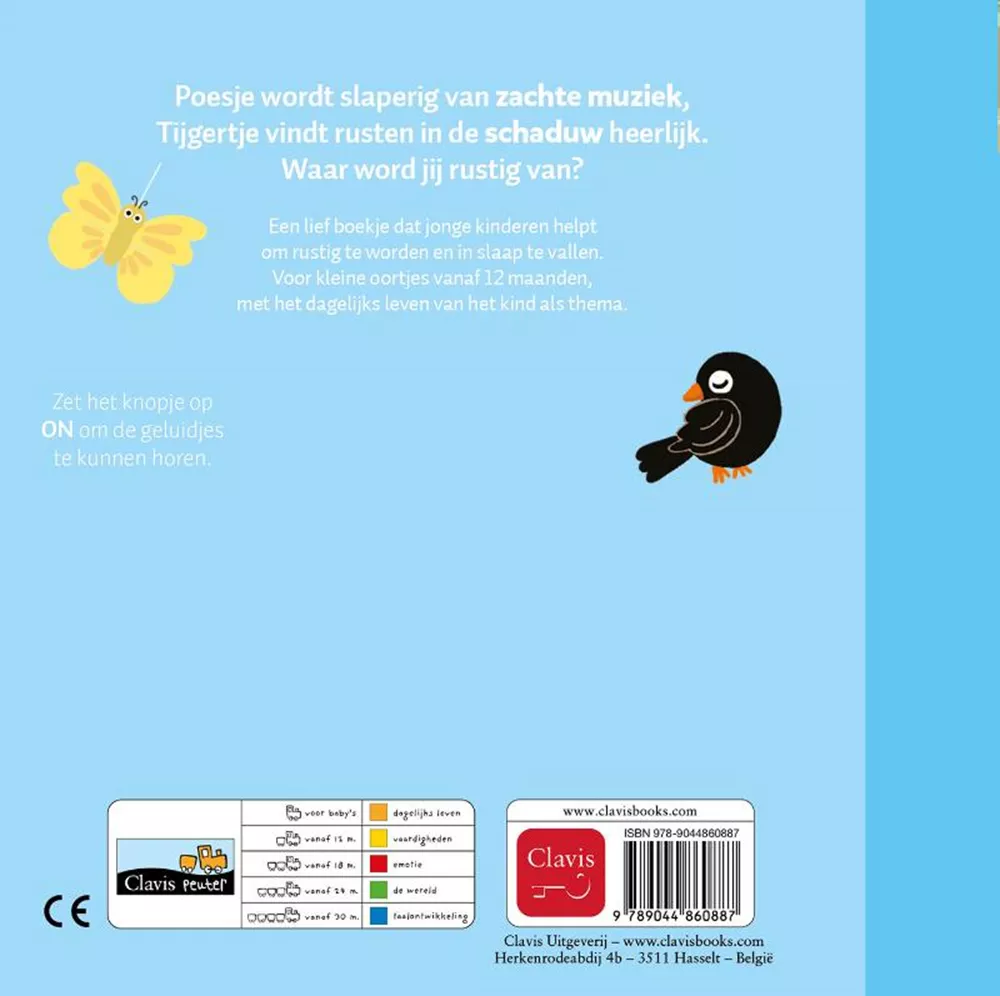 Poesje wordt slaperig van zachte muziek, Tijgertje vindt rusten in de schaduw heerlijk. Waar word jij rustig van? Een lief boekje dat jonge kinderen helpt om rustig te worden en in slaap te vallen. Voor kleine oortjes vanaf 12 maanden, met het dagelijks leven van het kind als thema.