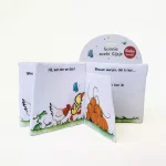Dankzij de knispergeluidjes, flapjes en voelplekjes over de populaire gansjes Gonnie en Gijsje is het stoffen boekje ‘Gonnie zoekt Gijsje’ een perfect cadeautje voor een heel scala aan kleintjes. De baby’s zullen gebiologeerd zijn door de contrasten en het geknisper; als ze rond een jaar oud zijn, ontdekken ze de voelplekjes en het flapje waarachter Gijsje verstopt zit; en dreumesen zullen steeds meer kleine details ontdekken en het verhaaltje kunnen volgen.