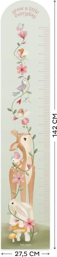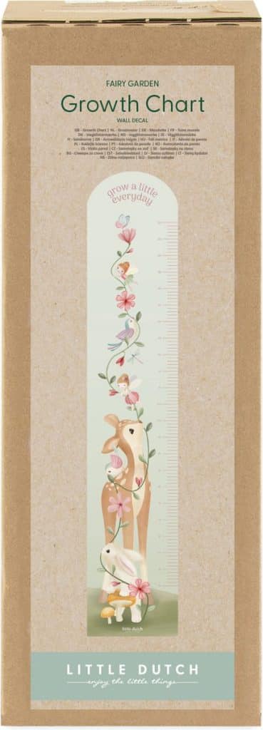 Een groeimeter muursticker Fairy Garden van het merk Little Dutch, om bij te houden hoe snel de kleine groeit! De muursticker is gemakkelijk te plakken en te verwijderen, dankzij het hoogwaardige, zelfklevende materiaal. Je kunt deze plaatsen op muren, en andere gladde, harde oppervlakken. Zorg voor een schoon en vlak oppervlak voor het beste resultaat. Geniet van de charme, elke dag opnieuw, met deze vrolijke en speelse Little Dutch groeimeter.