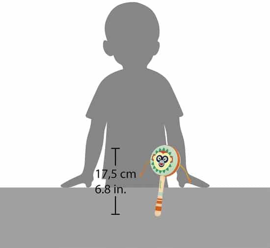 Uw kind zal een meester van muziek worden met deze handtrommel! Plaats de steel in uw hand en rol deze naar voren en achteren. Zachtjes voor langzame geluiden, en sneller of langzamer voor ritmische en snelle geluiden. Wat een ontdekkingen voor uw kind! Houten muzikaal imitatiespeelgoed van FSCTM-hout voor kinderen vanaf 2 jaar.