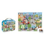 Deze kartonnen puzzel laat uw kind kennismaken met de stad en zijn levendige omgeving terwijl zijn behendigheid en concentratie wordt ontwikkeld. Geschikt voor kinderen van 4-6 jaar. Deze puzzel kan in zijn leuke koffer met stoffen handvat eenvoudig overal mee naartoe worden genomen. Bevat een poster die als model dient. Aantal stukjes: 36.