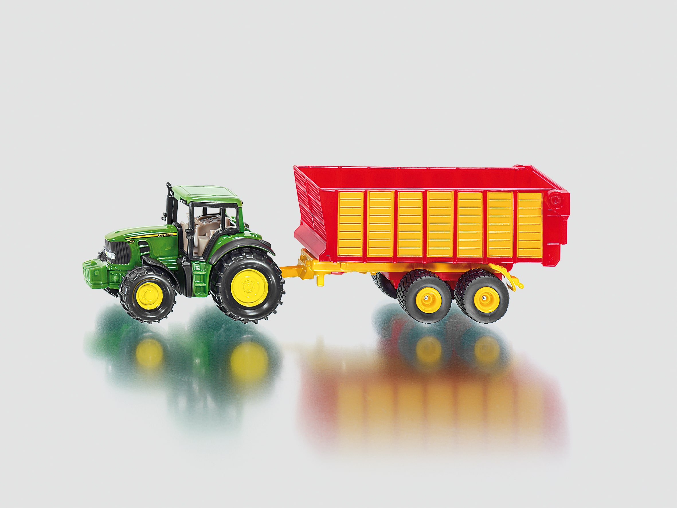 Beresterke Farmer-combinatie op de kleine schaal voor een voordelige prijs. De silagewagen met tandemas-chassis wordt door een zware Claas tractor uit de nieuwste serie getrokken. De klep aan de achterzijde van de laadbak kan worden geopend.