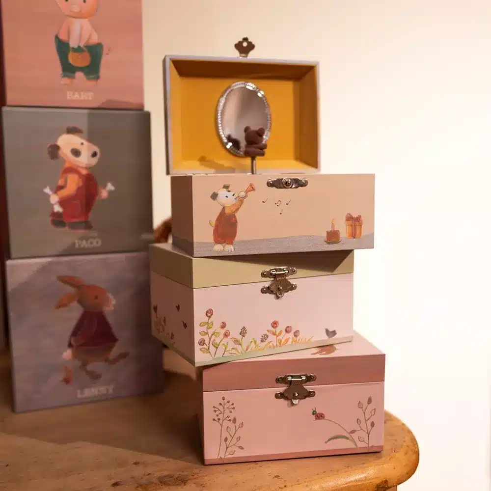 Het perfecte cadeau deze muziekdoos Vrienden. Aan de achterzijde opwinden en als je het doosje opent, begint de muziek te spelen en draait het schattige beertje. Ideaal om je juweeltjes op te bergen. Melodie: Für Elise.