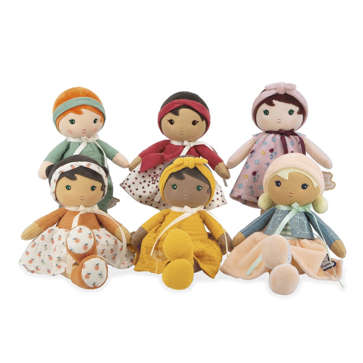 Deze charmante stoffen pop uit de Tendresse-collectie van Kaloo is geschikt vanaf de geboorte. Eloise draagt een prachtige jurk met citrusprint die haar lieve persoonlijkheid en tijdloze elegantie weerspiegelt. Met haar bijpassende haarband en schattige laarsjes is ze altijd klaar voor dromerige avonturen, of ze nu door denkbeeldige tuinen wandelt of meedoet aan alledaagse spelletjes. Eloise is heerlijk zacht en makkelijk vast te houden voor kleine handjes, gemaakt voor troostende knuffels en eindeloos aaien. Haar delicate details, warme uitdrukking en mooie lintjes maken haar een echt bijzonder speelkameraadje dat kinderen zullen koesteren. En het mooiste is: ze kan in de wasmachine, dus ze is altijd klaar voor nieuwe avonturen.