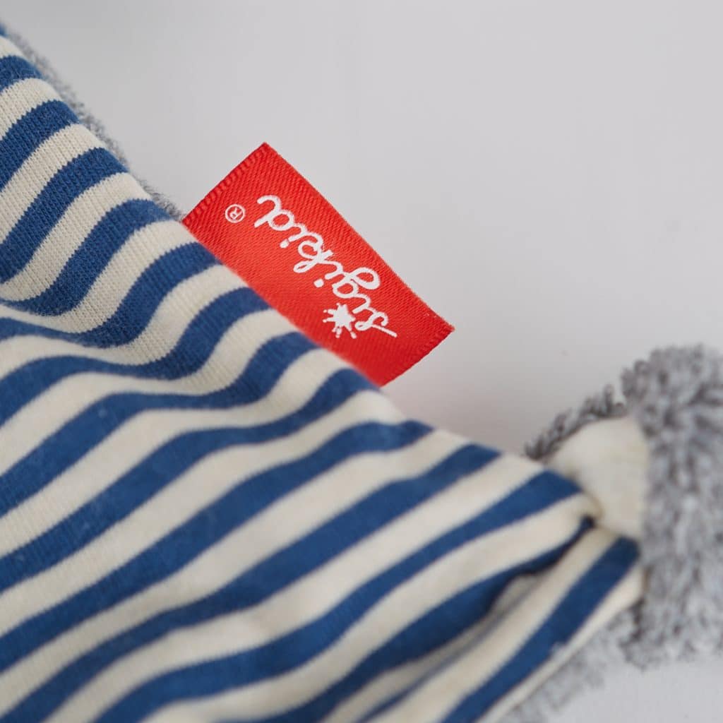 Een dekbed is een speciaal stuk stof - een eerste vriend en constante metgezel - vaak ver na de babytijd. Het olifantenknuffeldoekje van grijze lusstof en een knuffelige blauw-wit gestreepte single jersey - allemaal hoogwaardige katoenen stoffen - is een echte sigikid-klassieker.