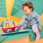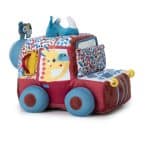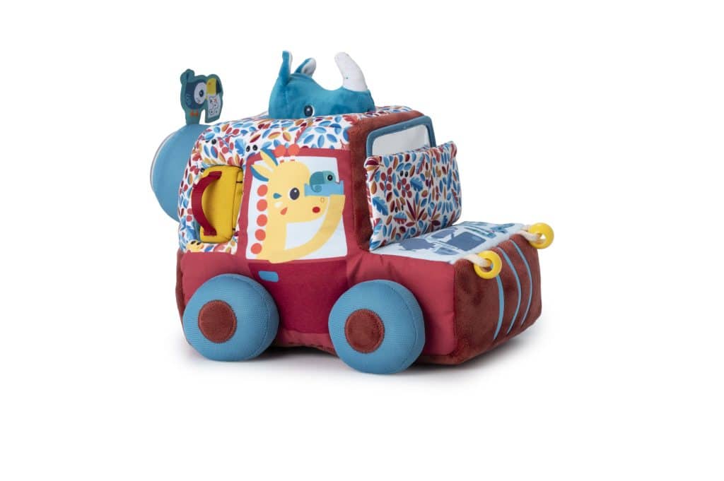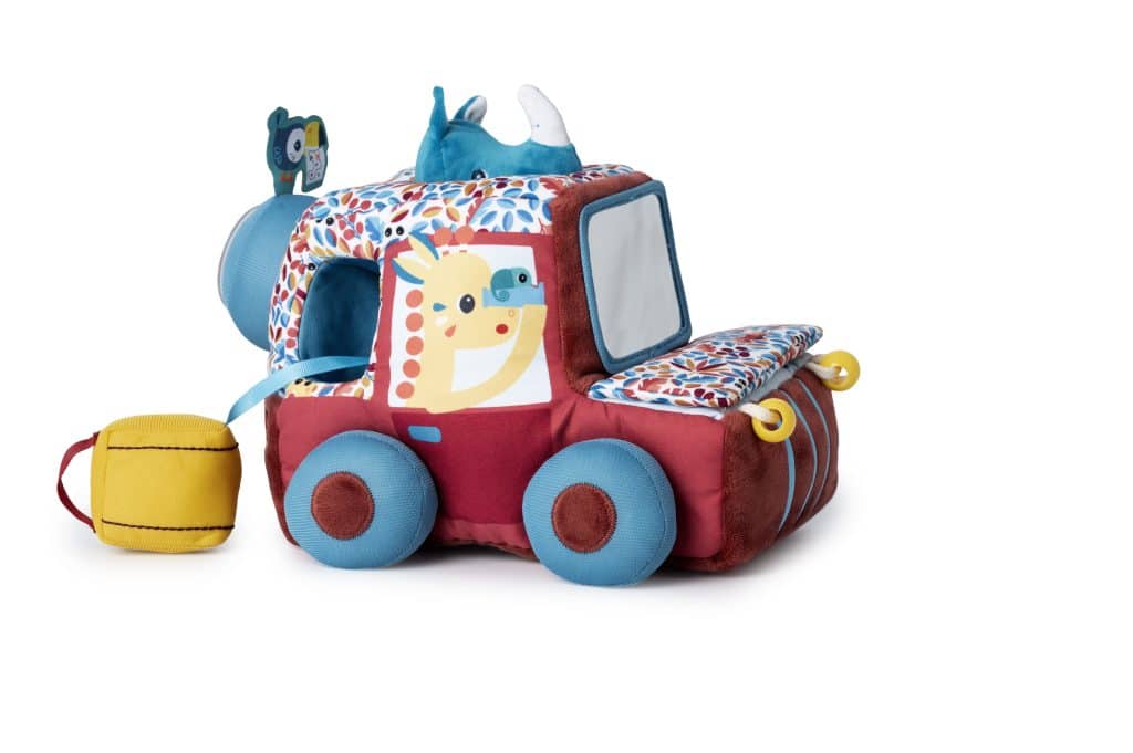 Met Jack achter het stuur en Marius die zijn hoofd door het dak steekt om de weg in de gaten te houden, is dit safarivoertuig klaar om de wilde gebieden te verkennen. Met zijn levendige kleuren en gevarieerde texturen biedt het een wereld van sensorische verkenning voor kleine avonturiers. De vele activiteiten nodigen kleine ontdekkingsreizigers uit om hun zintuigen, creativiteit en nieuwsgierigheid te ontwikkelen.