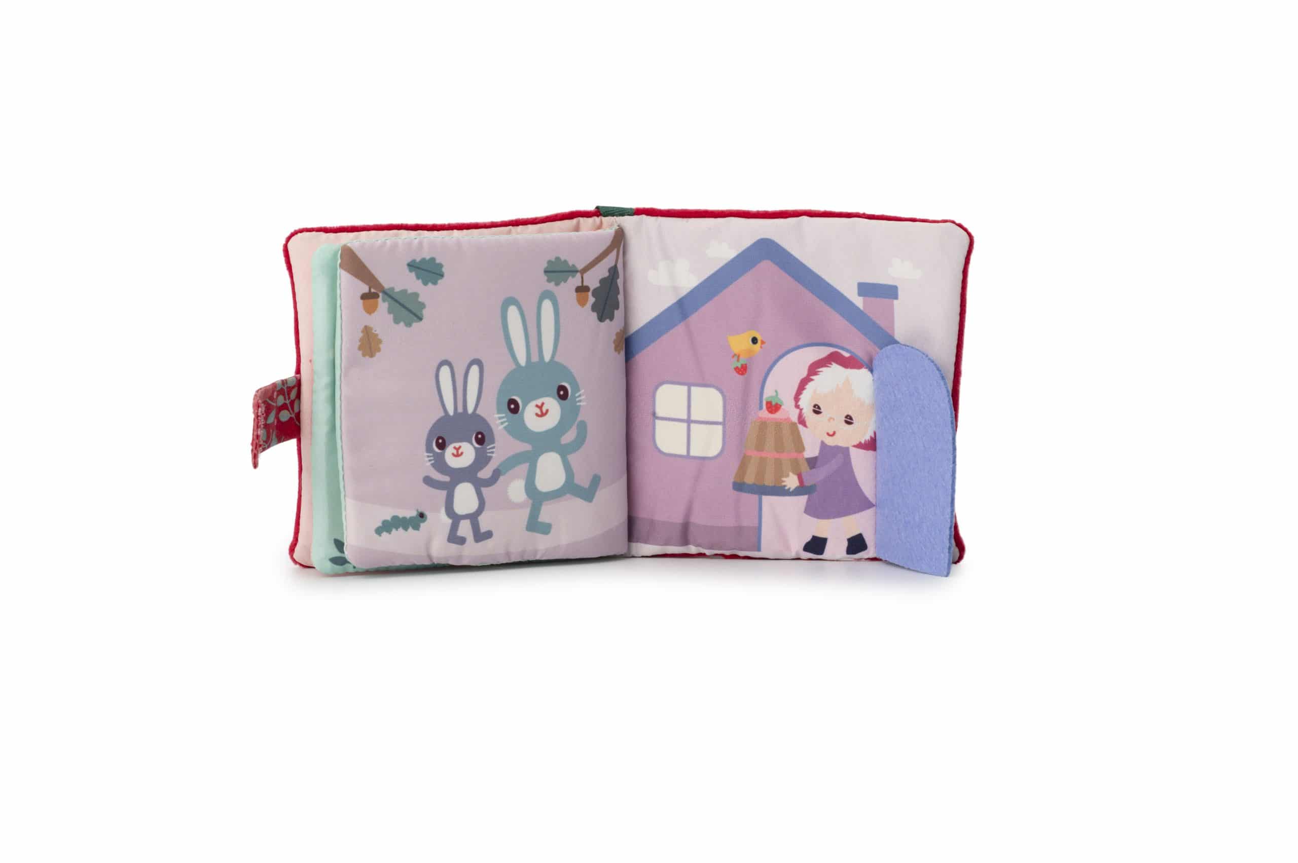 Roodkapje neemt je mee op pad doordit zachte kijk- en speelboekje dat oogjes en oortjes verwent en doorbrekende tandjes sust. Vanaf 6 maanden.