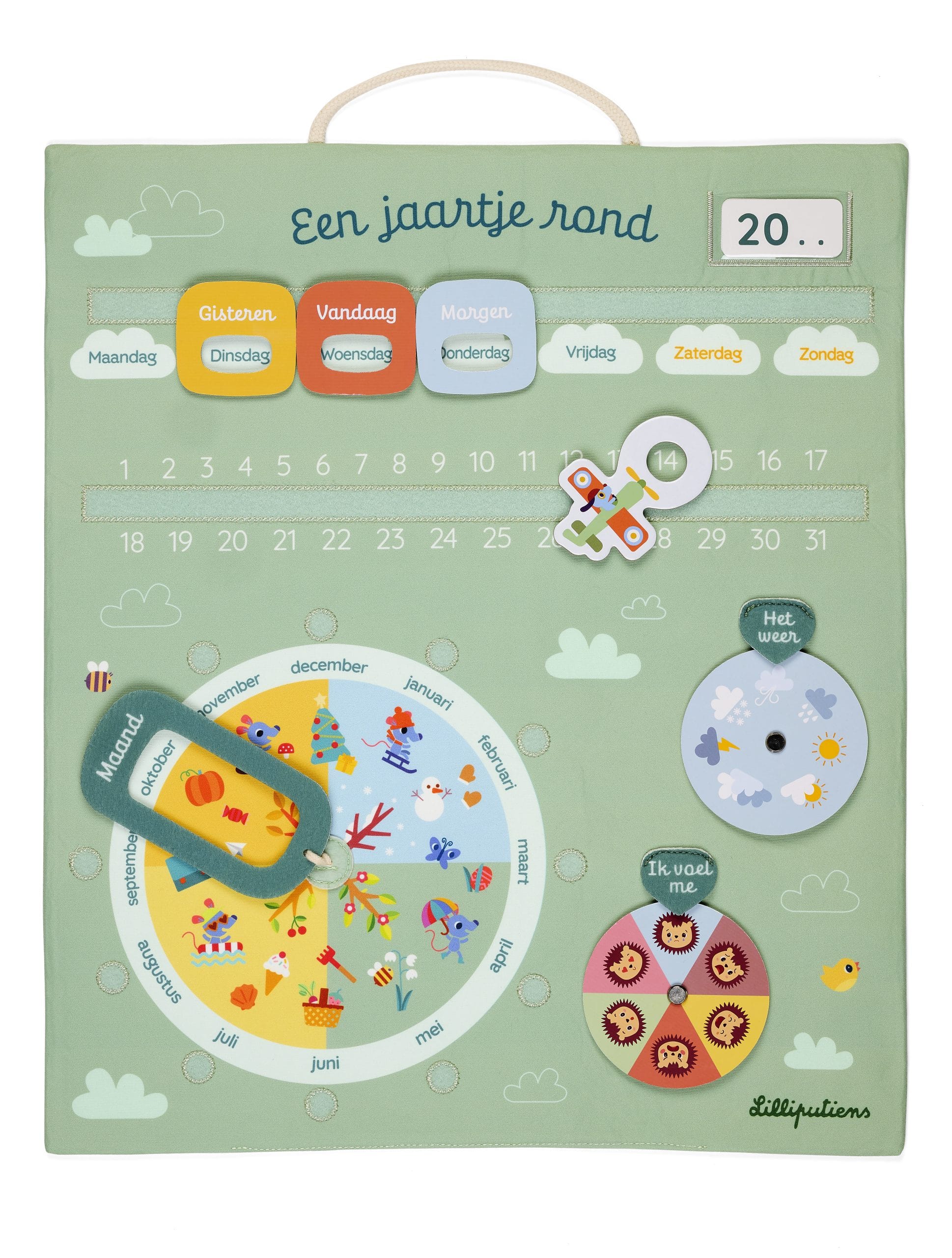 De maanden, de dagen van de week, gisteren, vandaag en de seizoenen. Hoe zit dat eigenlijk in elkaar en wat is de juiste volgorde? Kinderen hebben nog maar weinig besef van tijd. Leer er spelenderwijs alles over met dit mooi uitgewerkte paneel ‘Een jaartje rond’.