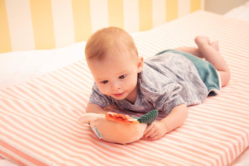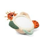 Activiteitenspiegel – Jack. Deze bijzondere spiegel is omringd door zachte activiteiten die de zintuigen van baby’s prikkelen. Tijdens het spelen op de buik kan de baby zijn eigen spiegelbeeld ontdekken en tegelijkertijd de kleine speelelementen rondom de spiegel verkennen. Dankzij het handige lusje kan de spiegel eenvoudig worden opgehangen aan de box, wieg of kinderwagen en ook gemakkelijk worden meegenomen. Een ideaal hulpmiddel om nieuwsgierigheid, waarneming en motorische ontwikkeling te stimuleren. versterken. Op de achterkant zal de baby geleidelijk aan verschillende vormen en contrasterende kleuren onderscheiden die zijn aandacht zullen trekken en zijn nieuwsgierigheid zullen wekken, zodat zijn observatievermogen wordt bevorderd. Machinewasbaar.