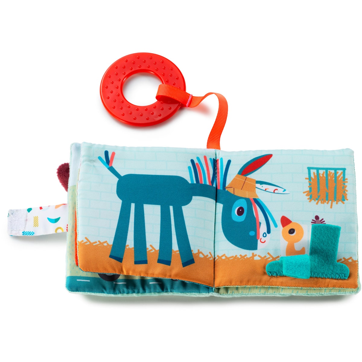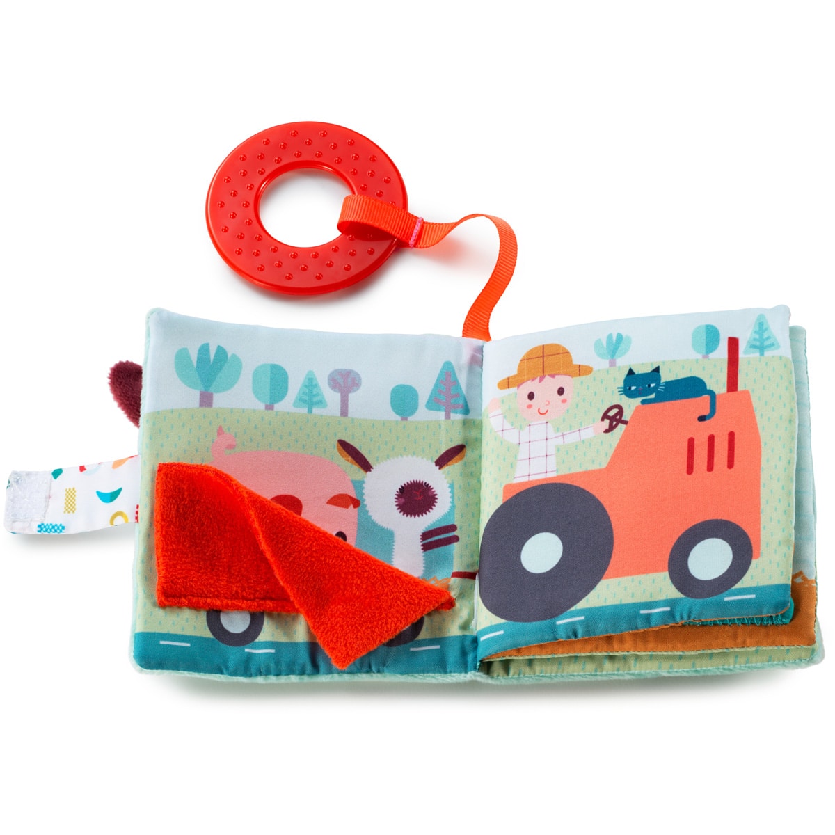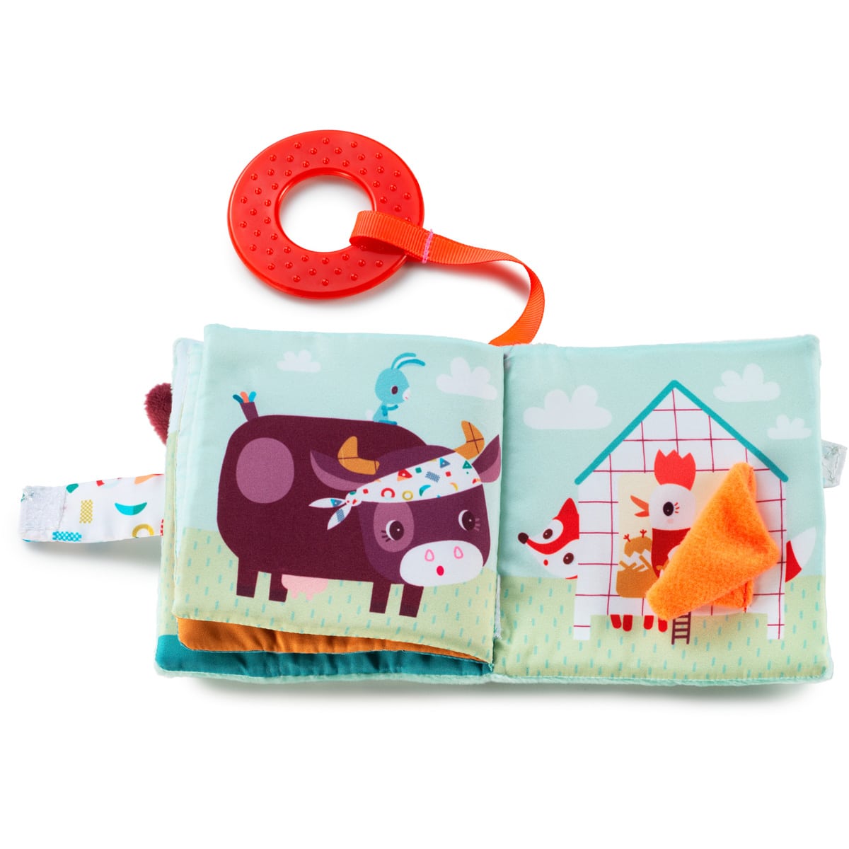 Speelboekje van stof met boerderijdieren. Vertel terwijl je kindje de geluiden en texturen ontdekt en zijn verbeelding de vrije loop laat.