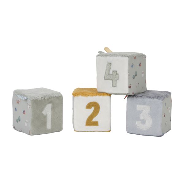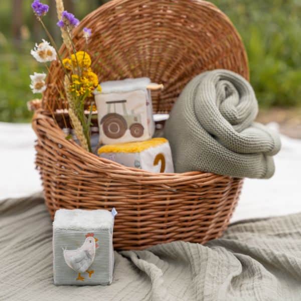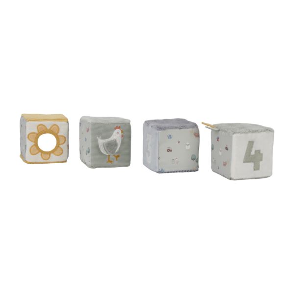 Met de Little Dutch Little Farm Blokkenset beleeft je kindje urenlang speelplezier! Deze 4 verschillende zachte blokken zijn voorzien van de cijfers 1 t/m 4, een spiegeltje en verschillende afbeeldingen uit de Little Farm serie. Ook kan je kindje de blokken stapelen en er een bouwwerkje van maken, zo ontwikkelt je kindje verschillende vaardigheden. Verder zijn de blokjes van Little Dutch gemaakt van hoogwaardig materiaal en veilig om mee te spelen.