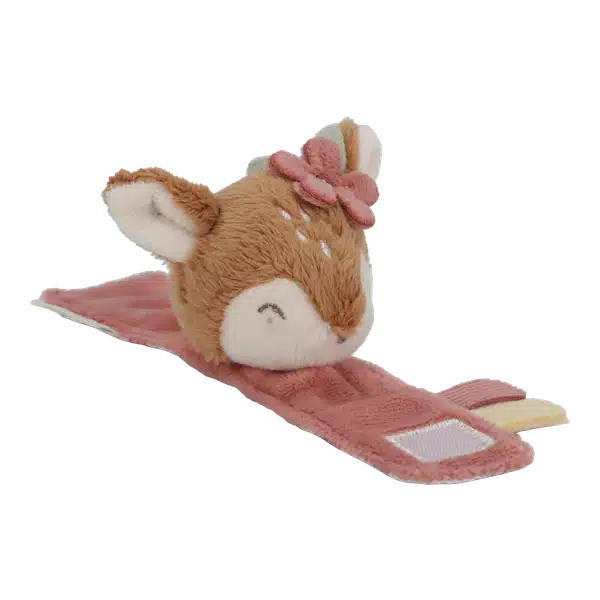 Zwaai met je handjes en sta versteld! Je baby zal dolblij zijn met deze polsrammelaar. Doe hem om de pols van je kleintje en laat het rammelplezier beginnen. Het knuffelige hertje bovenop de armband is klaar om te bewegen! Maar er is meer te ontdekken. De labeltjes moedigen je kindje aan om aan te raken en te grijpen. Geweldig vermaak voor een blije baby.