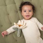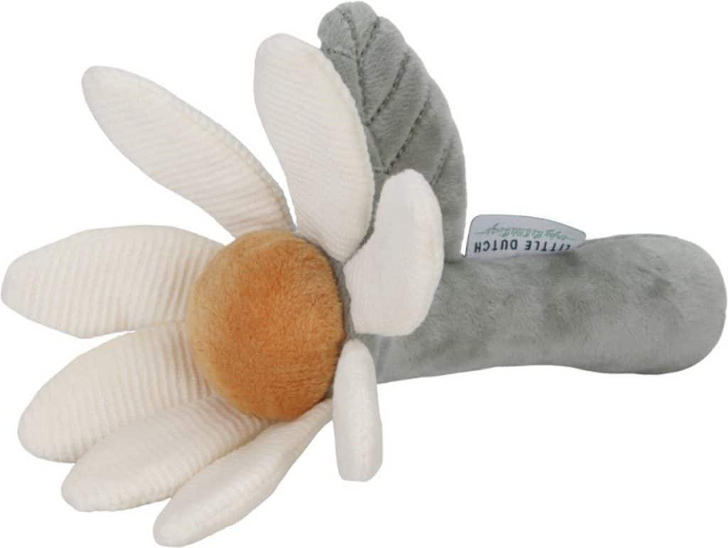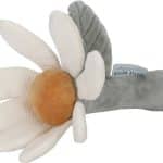 Hoe schattig is deze bloem rammelaar! Als je er mee speelt hoor je een plezierig geluidje. In de blaadjes van de bloem is een knisper verstopt voor extra plezier. De rammelaar stimuleert de hand-oogcoördinatie, is van heerlijk zacht materiaal gemaakt en kan makkelijk door kleine kinderhandjes vastgepakt worden. Apart wassen – 30 graden wasmachine