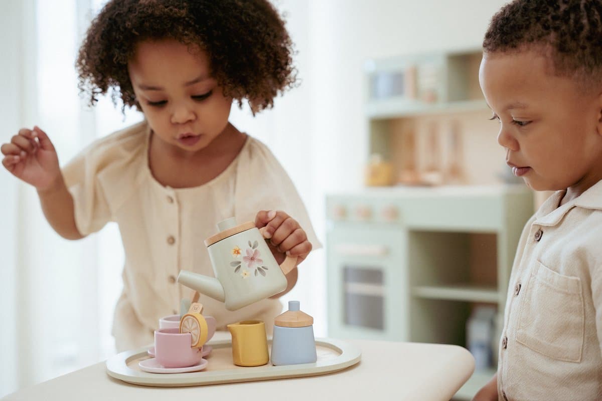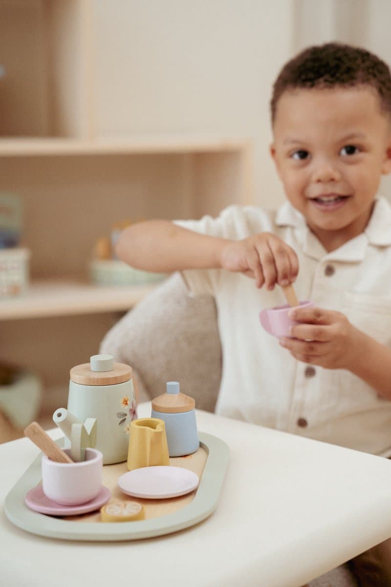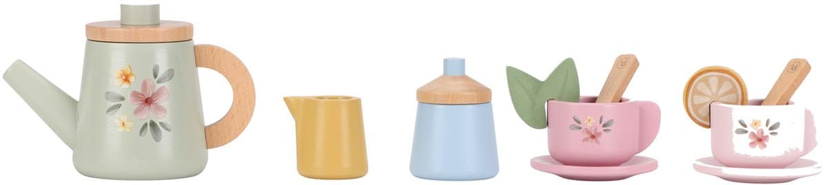Zullen we samen theedrinken? Met dit schattige houten theeservies kan je kleintje heerlijke kopjes thee schenken. Met melk of suiker, of een schijfje citroen of takje munt. Alle ingrediënten voor een gezellig theekransje met vriendjes en vriendinnetjes. Wasinstructies: enkel afnemen met een licht vochtig doekje.