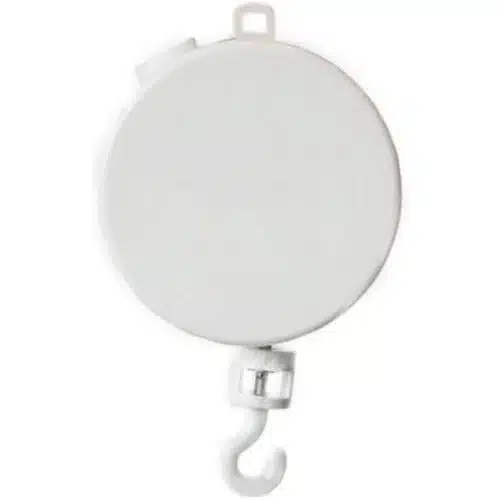 Muziekdoosje voor mobielhouder of babygym. Het muziekdoosje zorgt ervoor dat de mobiel draait en een rustgevend melodietje speelt. Draai aan het mechanisme van het muziekdoosje en de klanken van Brahms Lullaby klinken om heerlijk bij weg te dromen. Door middel van een schuifje kan je hem laten stoppen met spelen en draaien. Dit artikel is een decoratieartikel en geen speelgoed.