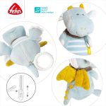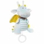 Knuffel & slaapmiddel: Opwindbare muziek met zachte melodie "Schlaf Kindlein Schlaf" kalmeert in elke situatie – voor baby's en peuters 0+. De lieve draak van zachte en knuffelbare materialen in de kleur delight blue is een perfecte vriend om mee te knuffelen en te dromen. De pluche draak is niet alleen de ideale speelkameraad, maar kan ook eenvoudig worden bevestigd aan het babybedje, de kinderwagen of de baby-autostoel en is dus een perfecte metgezel voor thuis of onderweg. Het knuffeldier is wasbaar op 30°C - voor het wassen moet de muziekbel via de veiligheidsrits verwijderd worden