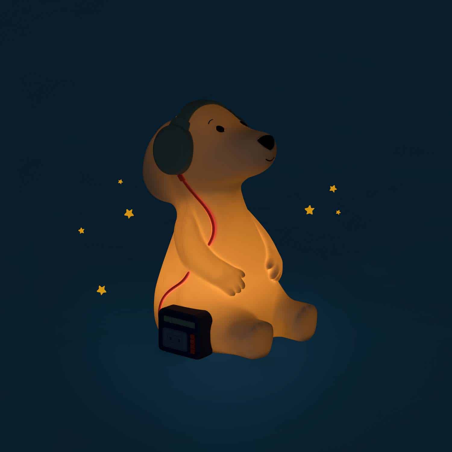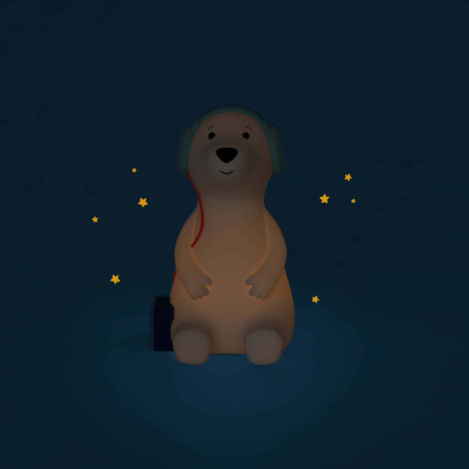 Nachtlampje met design uit de serie Puce & Pilou en dimmer (3 standen). Verspreidt een geruststellend licht in de kinderkamer na zonsondergang en decoreert de slaapkamer overdag prachtig! Het nachtlampje heeft drie verschillende helderheidsstanden en is gemaakt van BPA-vrij siliconen, waardoor het schokbestendig en gemakkelijk te hanteren is. Verwijderbare LED-module. Inclusief USB-C-kabel. Reiniging: Afnemen met een zachte, vochtige doek met het hele gezin!