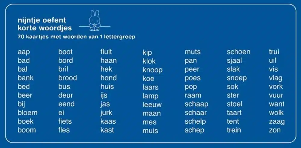 Nijntje oefent korte woordjes (70 kartonnen kaartjes). 2+