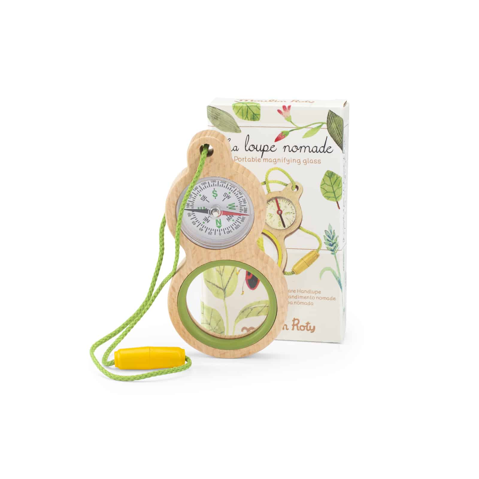 Met de draagbare vergrootglas van de botanicus kunt u dankzij de drievoudige vergroting (2x, 3x en 4x) zelfs de kleinste insecten observeren. Uitgerust met een kompas, leidt het u door de tuin op zoek naar de mooiste schatten. Reinig met een zachte, vochtige doek.