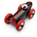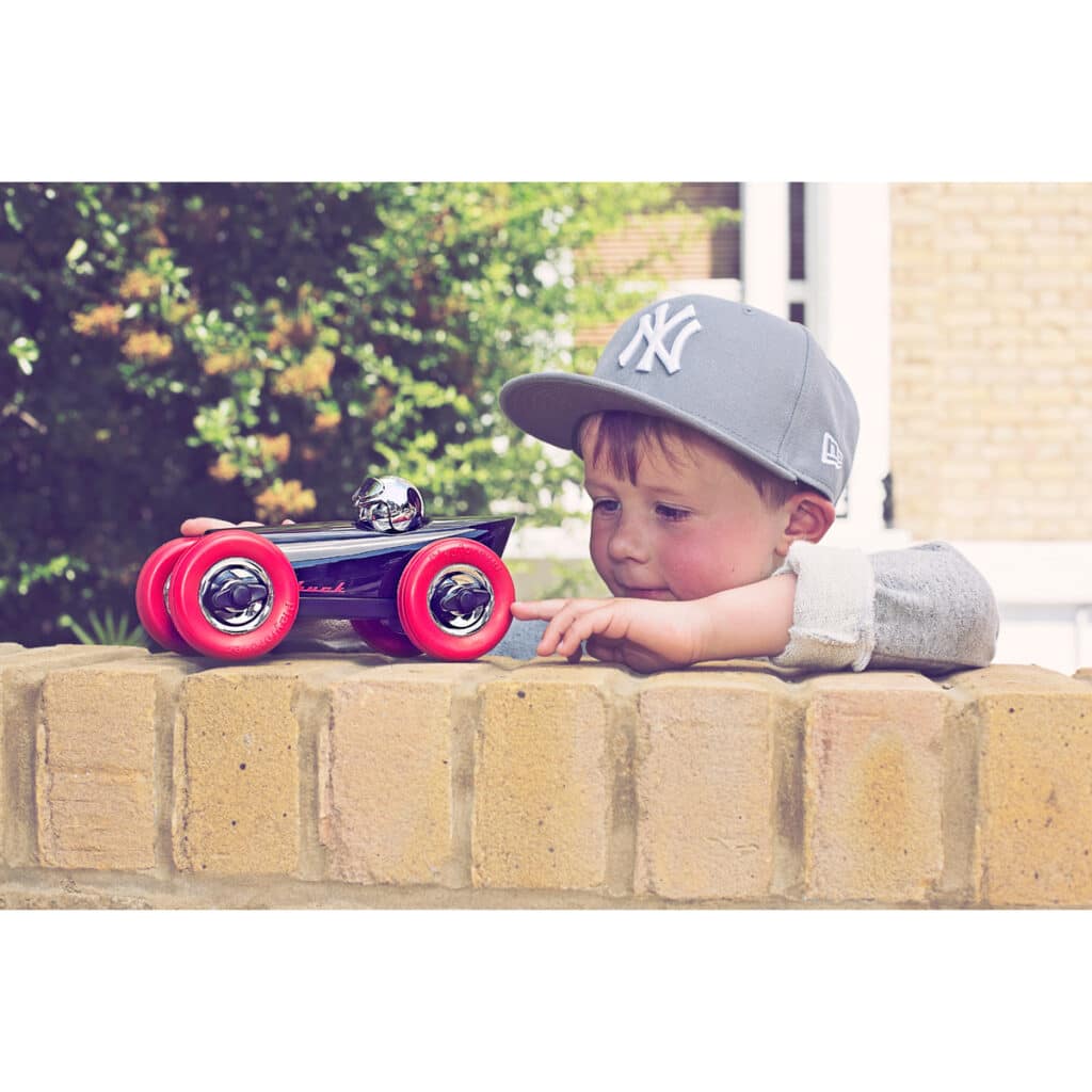 Glamour- en schoenenmode uit de jaren 60 is de inspiratie achter Buck. Beginnend als een schoenwig en eindigend als speelgoedraceauto. De schoonheid van Buck: een pure vorm op wielen, met toevoeging van gedurfde graphics om hem tot leven te brengen. Doet denken aan raceauto's uit de jaren '20 en '30, met een duidelijke knipoog naar het modetijdperk van de jaren '60, zal Buck een vleugje glamour in je speelgoedkast of plank brengen. Een klassieker van Playforever, om generaties lang te koesteren.