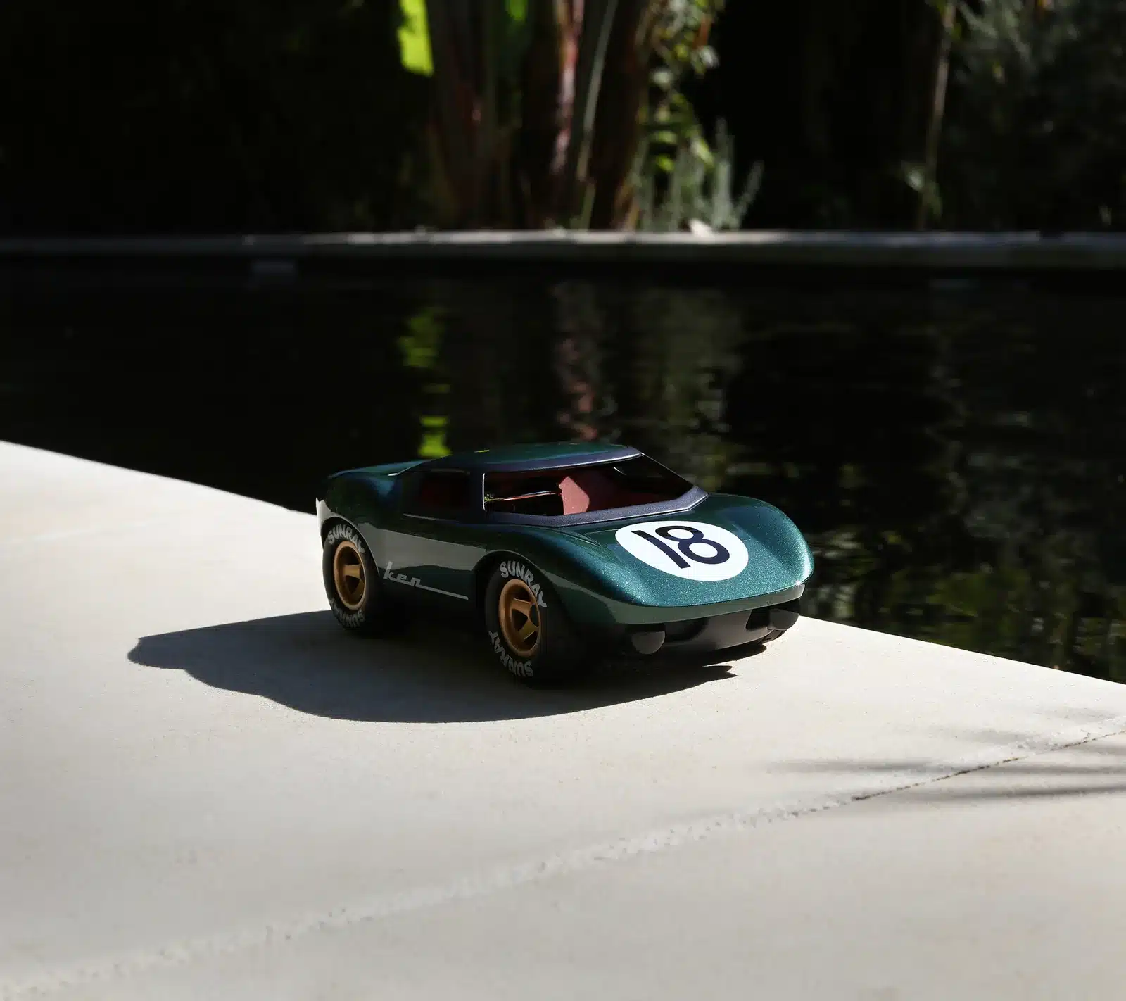 Playforever Ken Rogers is een zorgvuldig ontworpen racewonder, geinspireerd op de iconische Amerikaanse auto’s uit de late jaren 60 en 70. Deze prachtige racemachine pronkt met strakke lijnen in metallic groen, met een racenummer 18 er trots op. Wat een prachtig cadeau voor een kind dat 18 wordt…. Het blijft niet bij de voorkant, want deze auto heeft dubbele uitlaten aan de achterkant, 5-spaaks wielen, stijlvolle afwerkingen en coureru met een chromen helm die staat te popelen om te racen. Perfect voor coole kids van alle leeftijden.