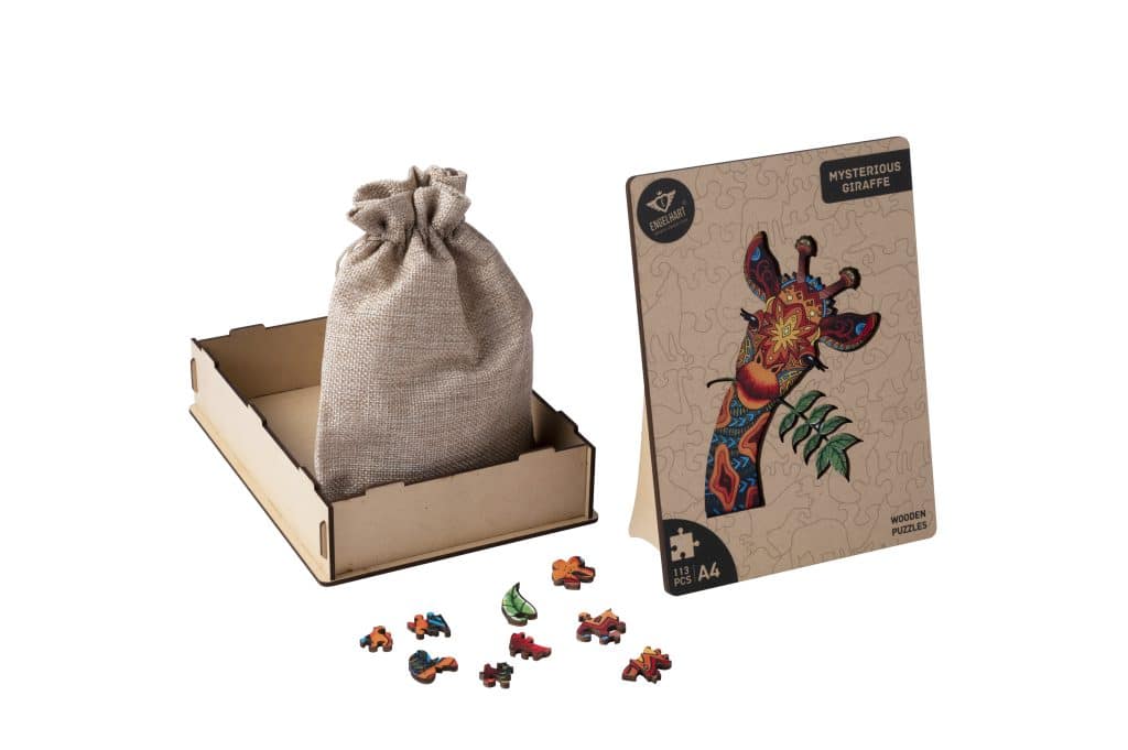 Puzzel gemaakt van hout geschikt voor kinderen en volwassenen. Alle puzzelstukjes hebben een unieke en herkenbare vorm! Inhoud: 98 uniek gevormde puzzelstukjes met een opbergetui en versierde opbergdoos. Afmetingen Puzzel: 21x29 cm.