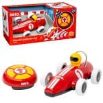 Broem, broem! De race-auto met afstandsbediening van BRIO met zijn felrode en gestroomlijnde uiterlijk biedt kinderen urenlang raceplezier. Deze race-auto met afstandsbediening is ideaal voor 2-jarigen; met de intuïtieve afstandsbedieningsknop kunnen ze hem na een paar keer oefenen als een echte coureur door de kamer sturen. Zo kunnen ze hun behendigheid en controle op leuke en spannende wijze oefenen.