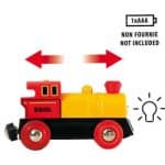 Kom op stoom met deze rode, op batterijen aangedreven locomotief. De voor- en achteruit functies én de werkende koplampen maken deze locomotief een must-have voor elke spoorwegfanaat!BRIO World is een speelsysteem dat meegroeit met de fantasie van kinderen. Er bestaat geen goed of fout, en wat gisteren is gebouwd kan vandaag snel worden verbouwd voor het volgende avontuur. In deze speelwereld met open eind worden kinderen uitgedaagd in hand- oog coördinatie, planning en creativiteit.