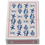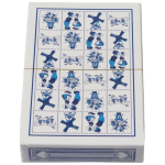 Prachtige set speelkaarten. De achterzijde van de kaarten, zijn voorzien van een Delftsblauw tegelmotief waar typisch Hollandse iconen op te zien zijn.