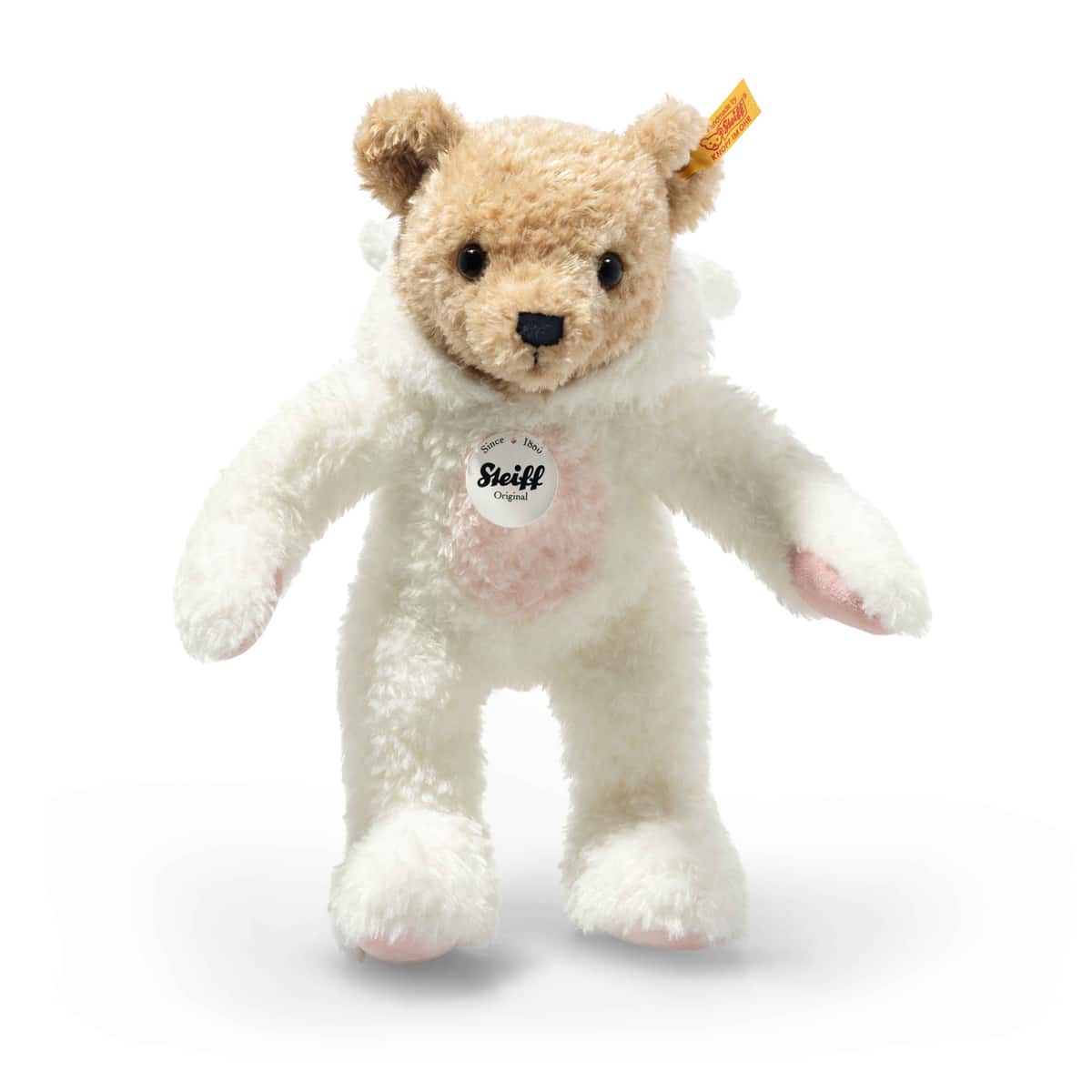 Dit lieve konijn combineert het klassieke Teddybeer-gevoel met een speelse hoodie, waardoor hij direct een vrolijke vriend wordt voor jong en oud. Met zijn zachte, witte pluche vacht en schattige oortjes is deze knuffel onweerstaanbaar om vast te houden. De hoodie kan op of af, zodat je steeds een andere look kunt geven aan je nieuwe maatje. Dankzij het formaat van 27 cm is hij ideaal om overal mee naartoe te nemen, of het nu naar bed is of op avontuur buitenshuis. De Steiff Hoodie-Teddy konijn is veilig voor kinderen vanaf 0 jaar, wasbaar en voorzien van het beroemde Steiff knopje in het oor. Een tijdloos cadeau voor elke gelegenheid!