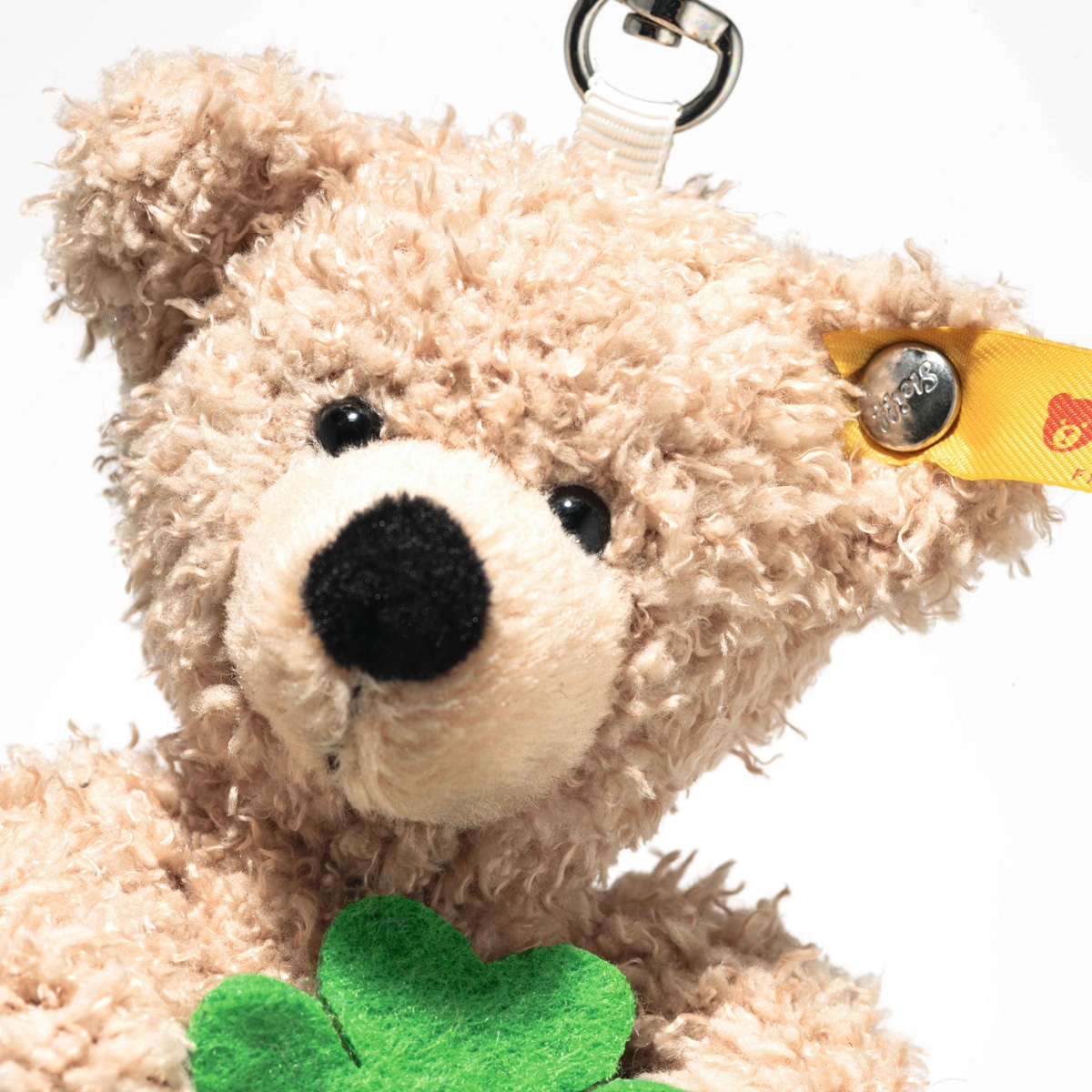 Met de Steiff pluche sleutelhanger Fynn teddybeer Good Luck heb je altijd een schattige geluksbrenger bij je! Deze vrolijke teddybeer van 12 cm is gemaakt van heerlijk zacht pluche en houdt een klavertje vier van vilt stevig vast in zijn pootjes. Fynn kijkt je met zijn vriendelijke oogjes aan en is klaar om samen met jou op avontuur te gaan, waar je ook heen gaat. Dankzij de handige karabijnhaak bevestig je Fynn eenvoudig aan je tas, rugzak of sleutelbos. Zo draag je een beetje geluk altijd met je mee! De Steiff sleutelhanger is niet alleen superzacht, maar ook veilig en duurzaam. Hij is machinewasbaar op 30°C en voorzien van het bekende Steiff-knopje in het oor, hét teken van kwaliteit.