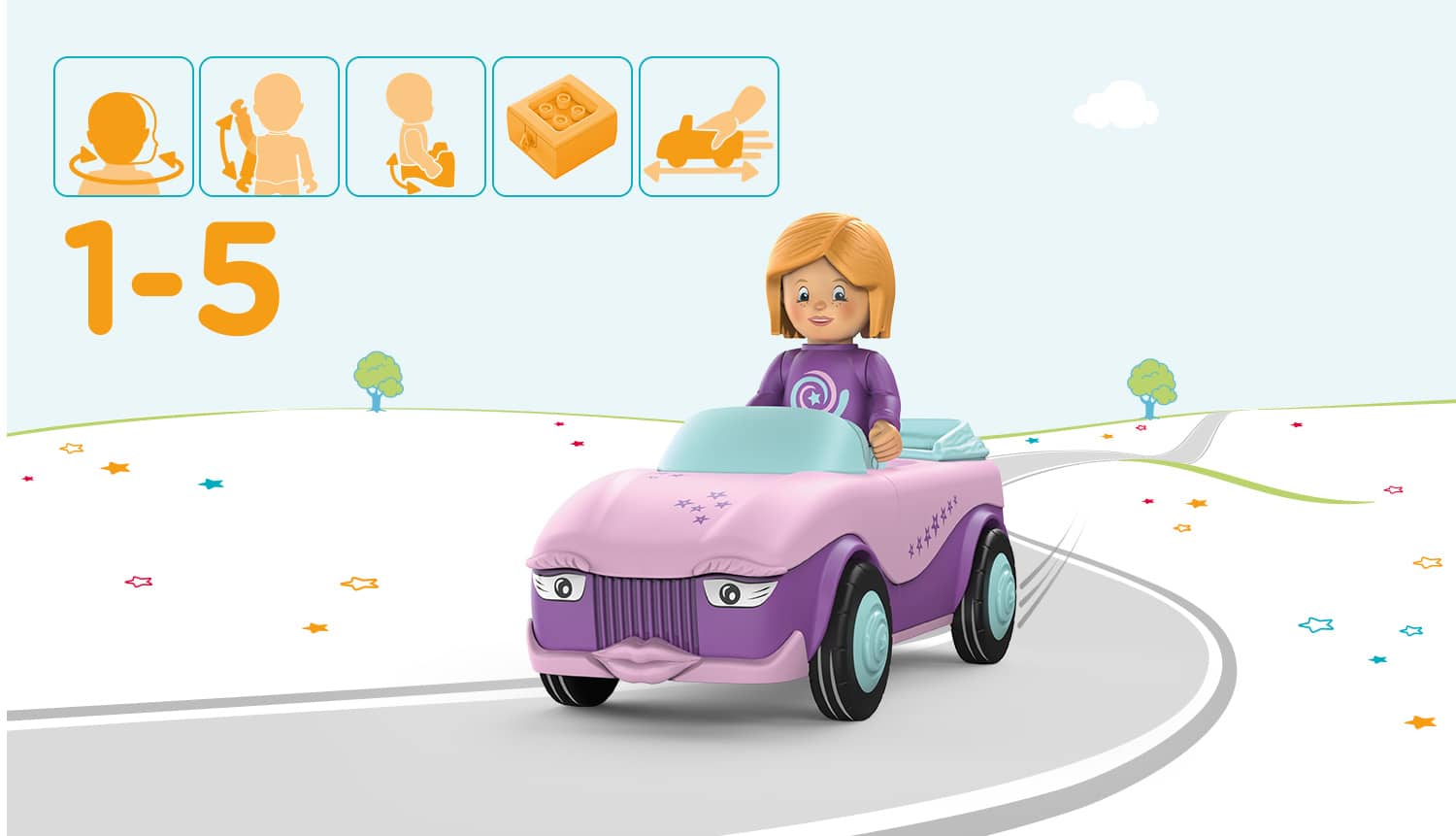 Boeiend, hoogwaardig speelgoed voor kinderen vanaf 18 maanden. Voor de ontwikkeling van de fijne motoriek, uithoudingsvermogen, geduld en plezier. Perfect als cadeau en voor dagelijks speelplezier – Betty Blinky: Beweegbare speelfiguur “Betty” en 2-delig voertuig “Blinky”. Click-Play-systeem: Het eenvoudige draai- en sluitsysteem van het speelgoed bevordert de motoriek en zorgt voor urenlang speelplezier. CE-keurmerk: vrij van weekmakers en chemische stoffen. Hoogwaardige frictiemotor voor interactief spelen. Inhoud: 1x Toddys by siku Betty Blinky, tweedelig voertuig en speelfiguur. Lengte: 7,5 cm (Betty) / 15,5 cm (Blinky). Gewicht: 145 g. Kleur: roze/paars. Materiaal: kunststof.
