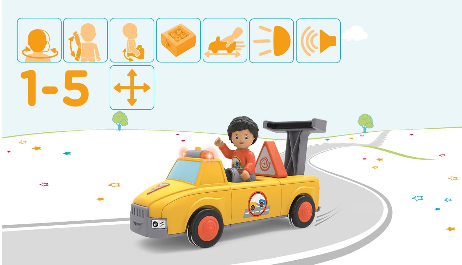 Boeiend, hoogwaardig speelgoed voor kinderen vanaf 18 maanden, voor ontwikkeling van de fijne motoriek, uithoudingsvermogen, geduld en plezier. Perfect als cadeau en voor dagelijks spelen. Chris speelfiguur is beweegbaar: het hoofd kan worden gedraaid de armen kunnen worden opgetild en de benen kunnen worden gebogen. Carry kan in 3 delen worden gedemonteerd en worden gecombineerd met andere Toddys voertuigen. Licht- en geluidseffecten voor realistisch spelen. Uitneembare gevarendriehoek en uitklapbare trekhaak. Siku Click-Play systeem: het draai- en vergrendelsysteem bevordert de motoriek en zorgt voor urenlang speelplezier. CE-keurmerk: vrij van weekmakers en chemische stoffen. Inhoud: Chris Carry incl. 3-delig voertuig, speelfiguur en 3 AG batterijen
