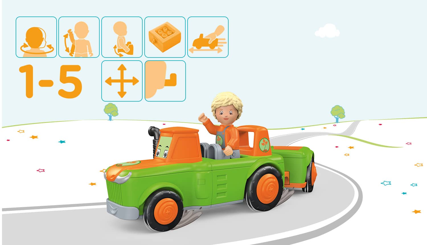 Boeiend, hoogwaardig speelgoed voor kinderen vanaf 18 maanden. Voor de ontwikkeling van fijne motoriek, uithoudingsvermogen, geduld en plezier. Perfect als cadeau en voor dagelijks speelplezier – Frank Farmy: Beweegbare speelfiguur Frank en 3-delig voertuig Farmy. Klep van de aanhanger kan worden geopend. Siku Click-Play-systeem: Het eenvoudige draai- en sluitsysteem van het speelgoed bevordert de motoriek en zorgt voor urenlang speelplezier. CE-keurmerk: Vrij van weekmakers en chemische stoffen. Hoogwaardige frictiemotor voor eenvoudige aandrijving – Inhoud: Frank Farmy. Incl. 3-delig voertuig en speelfiguur, Lengte: 7,5 cm (Frank) / 25,1 cm (Farmy), Gewicht: 290 g, Kleur: groen/oranje, Materiaal: kunststof.