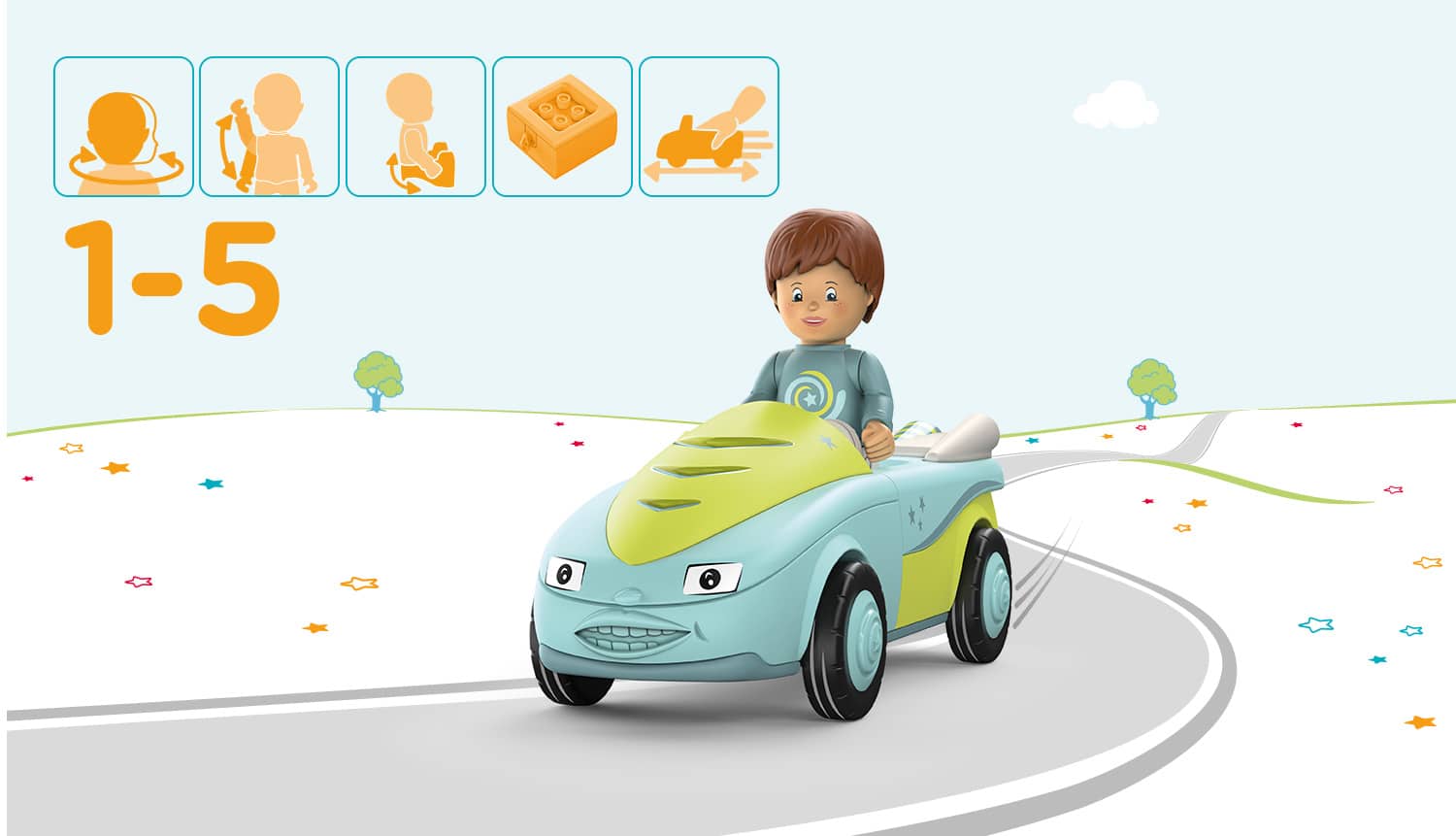 Boeiend, hoogwaardig speelgoed voor kinderen vanaf 18 maanden, voor de ontwikkeling van de fijne motoriek, uithoudingsvermogen, geduld en voor plezier. Perfect als cadeau en voor dagelijks spelen. Freddy Fluxy: Beweegbare speelfiguur “Freddy” en tweedelig voertuig “Fluxy”. Click-Play-systeem: Het eenvoudige draai- en sluitsysteem van het speelgoed bevordert de motoriek en zorgt voor urenlang speelplezier. CE-keurmerk: vrij van weekmakers en chemische stoffen. Hoogwaardige frictiemotor voor interactief spelen. Inhoud: 1x Toddys by siku Freddy Fluxy, tweedelig voertuig en speelfiguur, Lengte: 7,5 cm (Freddy) / 16,5 cm (Fluxy), Gewicht: 145 g, Kleur: Turquoise/Groen, Materiaal: Kunststof.