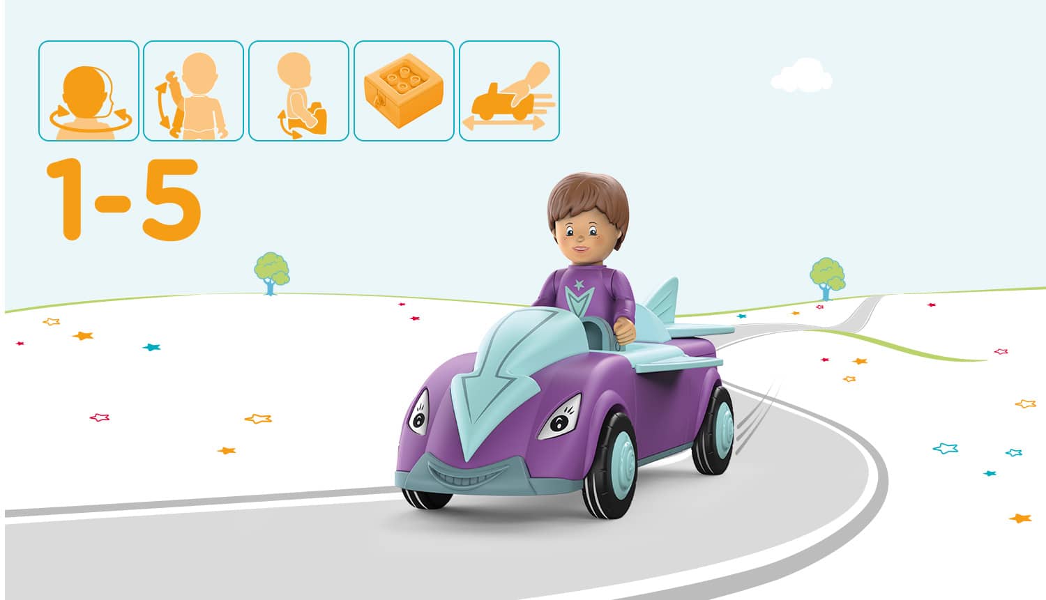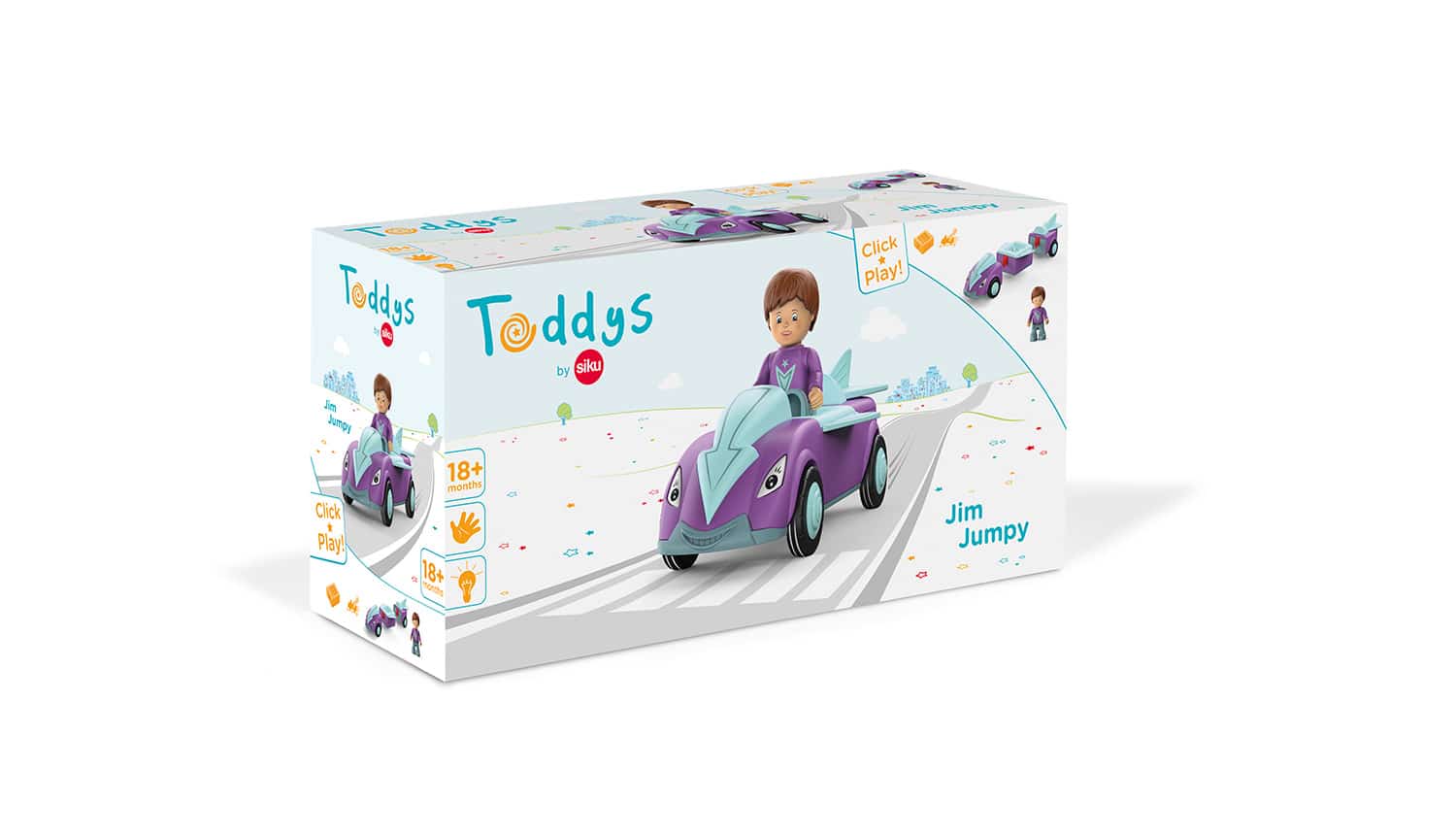 Boeiend, hoogwaardig speelgoed voor kinderen vanaf 18 maanden. Voor de ontwikkeling van de fijne motoriek, uithoudingsvermogen, geduld en plezier. Perfect als cadeau en voor dagelijks speelplezier – Jim Jumpy: Beweegbare speelfiguur “Jim” en 3-delig voertuig “Jumpy”. Click-Play-systeem: Het eenvoudige draai- en vergrendelsysteem van het speelgoed bevordert de motoriek en zorgt voor urenlang speelplezier. CE-keurmerk: vrij van weekmakers en chemische stoffen. Hoogwaardige frictiemotor voor interactief spelen. Inhoud: 1x Toddys by siku Jim Jumpy, 3-delig voertuig en speelfiguur. Lengte: 7,5 cm (Jim) / 19 cm (Jumpy). Gewicht: 191 g. Kleur: paars/turquoise. Materiaal: kunststof.