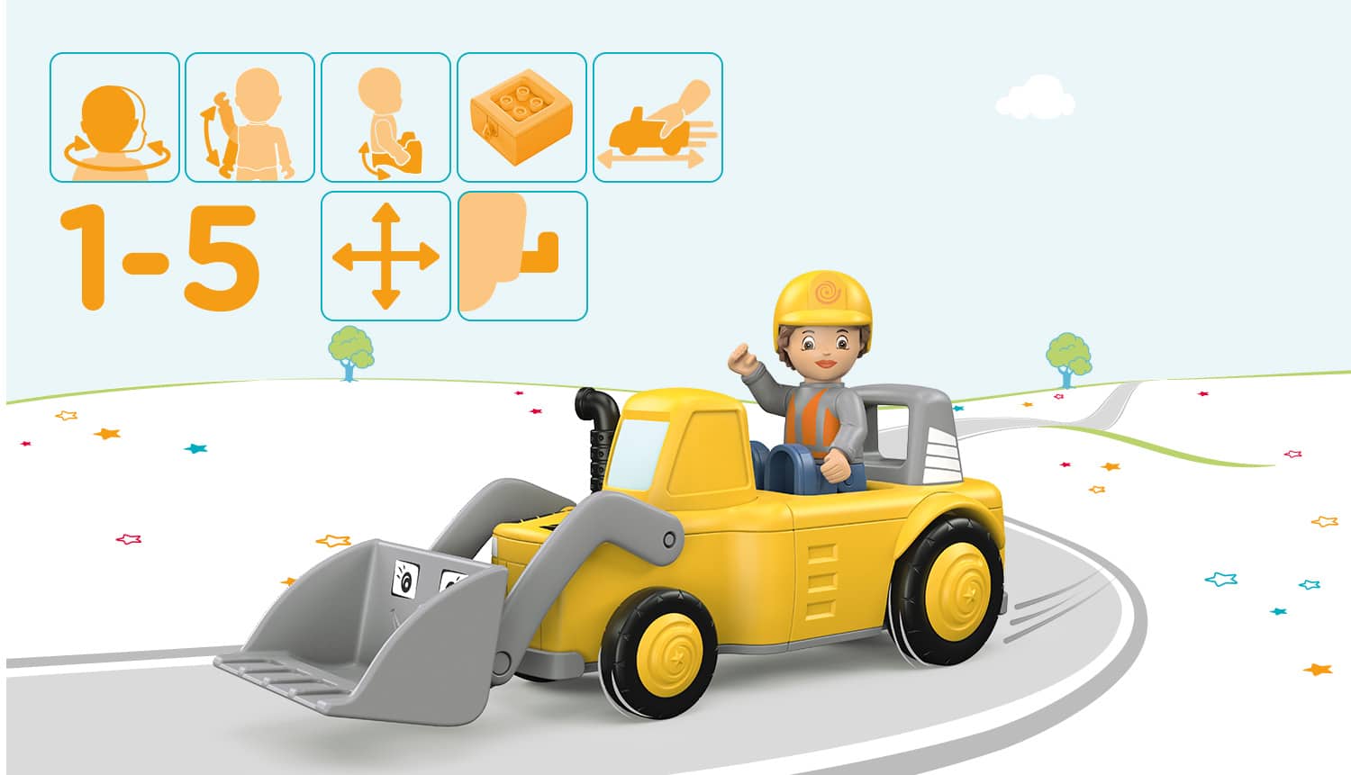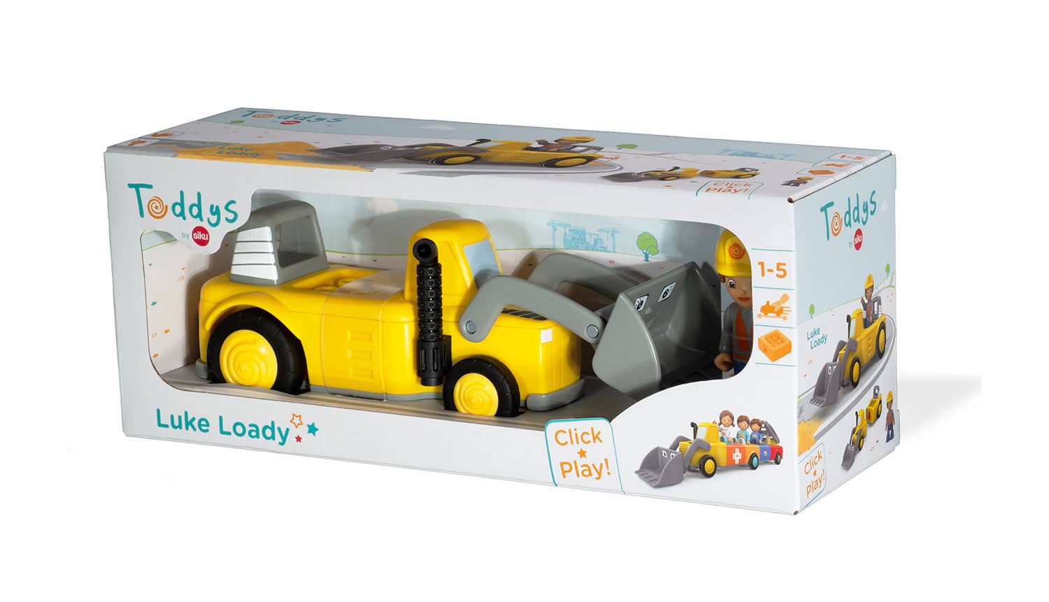 Boeiend, hoogwaardig speelgoed voor kinderen vanaf 18 maanden. Voor de ontwikkeling van de fijne motoriek, uithoudingsvermogen, geduld en voor plezier. Perfect als cadeau en voor dagelijks speelplezier – Luke Loady: Beweegbare speelfiguur Luke en 2-delig voertuig Loady. Met beweegbare schep en trekhaak – Siku Click-Play-systeem: Het eenvoudige draai- en vergrendelsysteem van het speelgoed bevordert de motoriek en zorgt voor urenlang speelplezier. CE-keurmerk: Vrij van weekmakers en chemische stoffen, Hoogwaardige frictiemotor voor eenvoudige aandrijving – Inhoud: 1x Toddys by siku, Luke Loady, Incl. tweedelig voertuig en speelfiguur, Lengte: 7,5 cm (Luke) / 21,9 cm (Loady), Gewicht: 210 g, Kleur: geel/grijs, Materiaal: kunststof