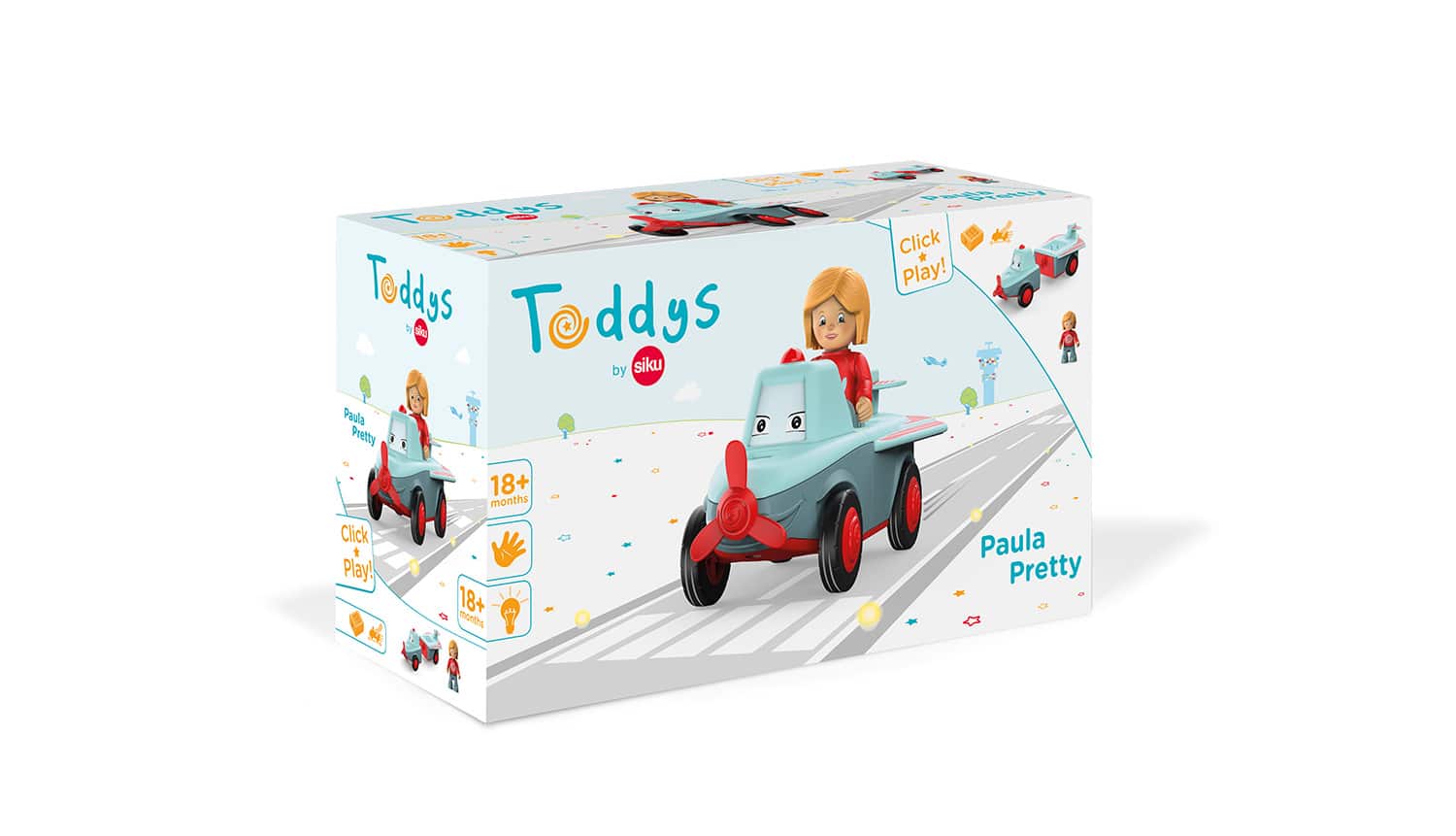 Boeiend, hoogwaardig speelgoed voor kinderen vanaf 18 maanden. Voor de ontwikkeling van fijne motoriek, uithoudingsvermogen, geduld en plezier. Perfect als cadeau en voor dagelijks speelplezier – Paula Pretty: Beweegbare speelgoedfiguur “Paula” en 2-delig propellervliegtuig “Pretty”. Click-Play-systeem: Het eenvoudige draai- en sluitsysteem van het speelgoed bevordert de motoriek en zorgt voor urenlang speelplezier. CE-keurmerk: vrij van weekmakers en chemische stoffen. Hoogwaardige frictiemotor voor interactief spelen. Inhoud: 1x Toddys by siku Paula Pretty, tweedelig propellervliegtuig en speelgoedfiguur. Lengte: 7,5 cm (Paula) / 16,5 cm (Pretty). Gewicht: 145 g. Kleur: blauwgrijs/rood. Materiaal: kunststof.