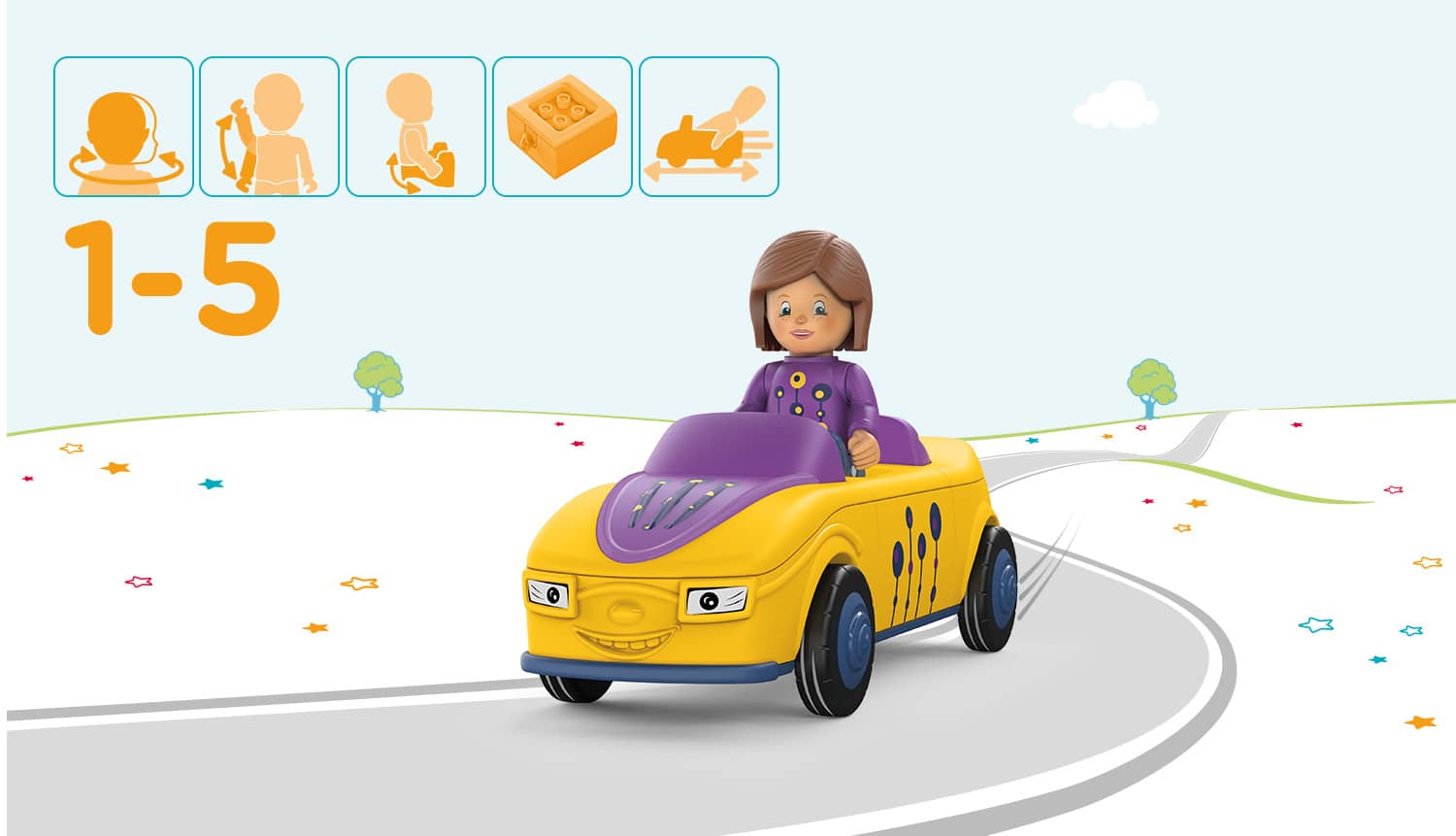 Boeiend, hoogwaardig speelgoed voor kinderen vanaf 18 maanden. Voor de ontwikkeling van de fijne motoriek, uithoudingsvermogen, geduld en plezier. Perfect als cadeau en voor dagelijks speelplezier – Zoe Zoomy: Beweegbare speelfiguur “Zoe” en 3-delig voertuig “Zoomy”. Click-Play-systeem: Het eenvoudige draai- en vergrendelsysteem van het speelgoed bevordert de motoriek en zorgt voor urenlang speelplezier. CE-keurmerk: vrij van weekmakers en chemische stoffen. Hoogwaardige frictiemotor voor interactief spelen. Inhoud: 1x Toddys by siku Zoe Zoomy, 3-delig voertuig en speelfiguur. Lengte: 7,5 cm (Zoe) / 17,5 cm (Zoomy). Gewicht: 183 g. Kleur: Geel/Paars. Materiaal: Kunststof.