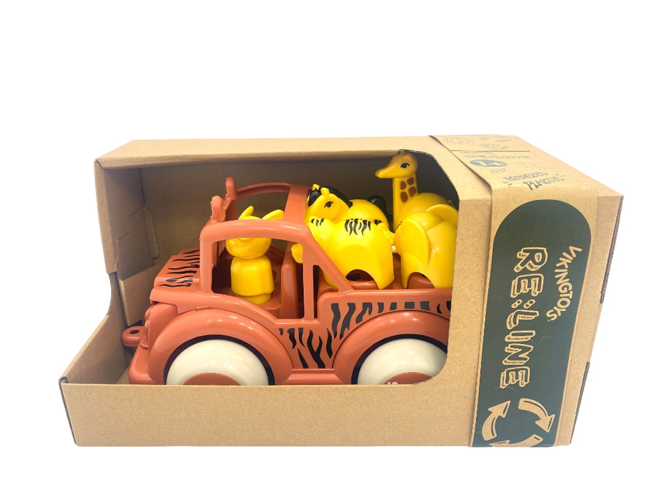 Beleef de leukste safari avonturen met deze safari auto voor kinderen van het merk Viking Toys. Deze safari auto is gemaakt van 100% recycled materiaal en geschikt voor binnen en buiten. De auto is stevig en robuust en wordt geleverd met 4 safari dieren en een bestuurder. RE-line: is de nieuwste toevoeging aan de productlijn van Viking Toys. Gemaakt van 100% gerecycled plastic gecertificeerd met RCS; Recycled Claim Standard. Naarmate de modernisering en technologie verder gaan, kunnen zij nu schoon, gerecycled plastic aanbieden, veilig voor kinderen! De kleuren zijn geïnspireerd op de tijdloze le corbusiercolors-lijn. 100% vaatwasmachinebestendig.