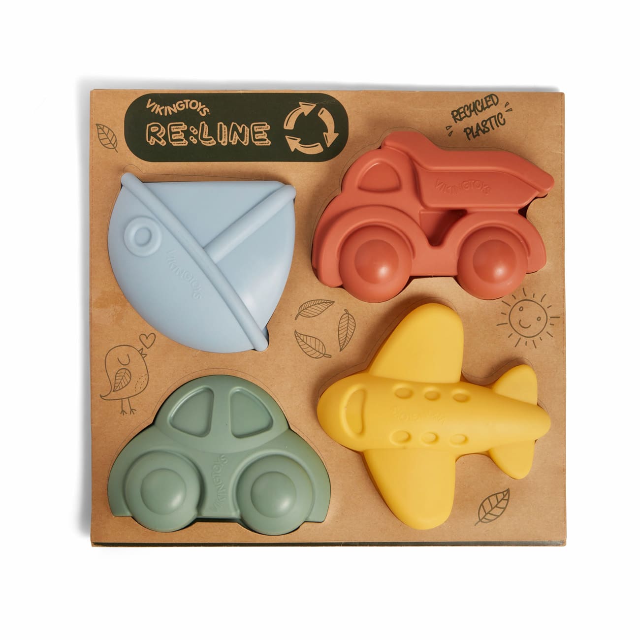 RE-line: De nieuwste toevoeging aan de productlijn van Viking Toys. Gemaakt van 100% gerecycled plastic gecertificeerd met RCS; Recycled Claim Standard. Naarmate de modernisering en technologie verder gaan, kunnen we nu schoon, gerecycled plastic aanbieden, veilig voor kinderen! De kleuren zijn geïnspireerd op de tijdloze le corbusiercolors-lijn. Het assortiment omvat voertuigen, speelSets, zand- en waterspeelgoed. 100% vaatwasmachinebestendig. Geschikt voor 1-6 jaar.