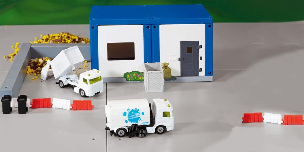 Netheid en orde zijn belangrijk voor mensen om zich prettig te voelen in de stad. Dat is precies waar dit pakket voor zorgt, bestaande uit een veegmachine en een vuilniswagen van siku. Het onverslaanbare duo ontdoet straten en pleinen van vuil en afval en is ideaal uitgerust voor alle taken. Beide voertuigen hebben tweeassige kunststof chassis met extreem beweegbare wielen en metalen bestuurderscabines. De veegmachine heeft een opbouw en zuiginrichting van kunststof.